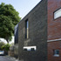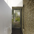 Black-grey linear brickwork is exposed in the interior in contrast to the white interior spaces.