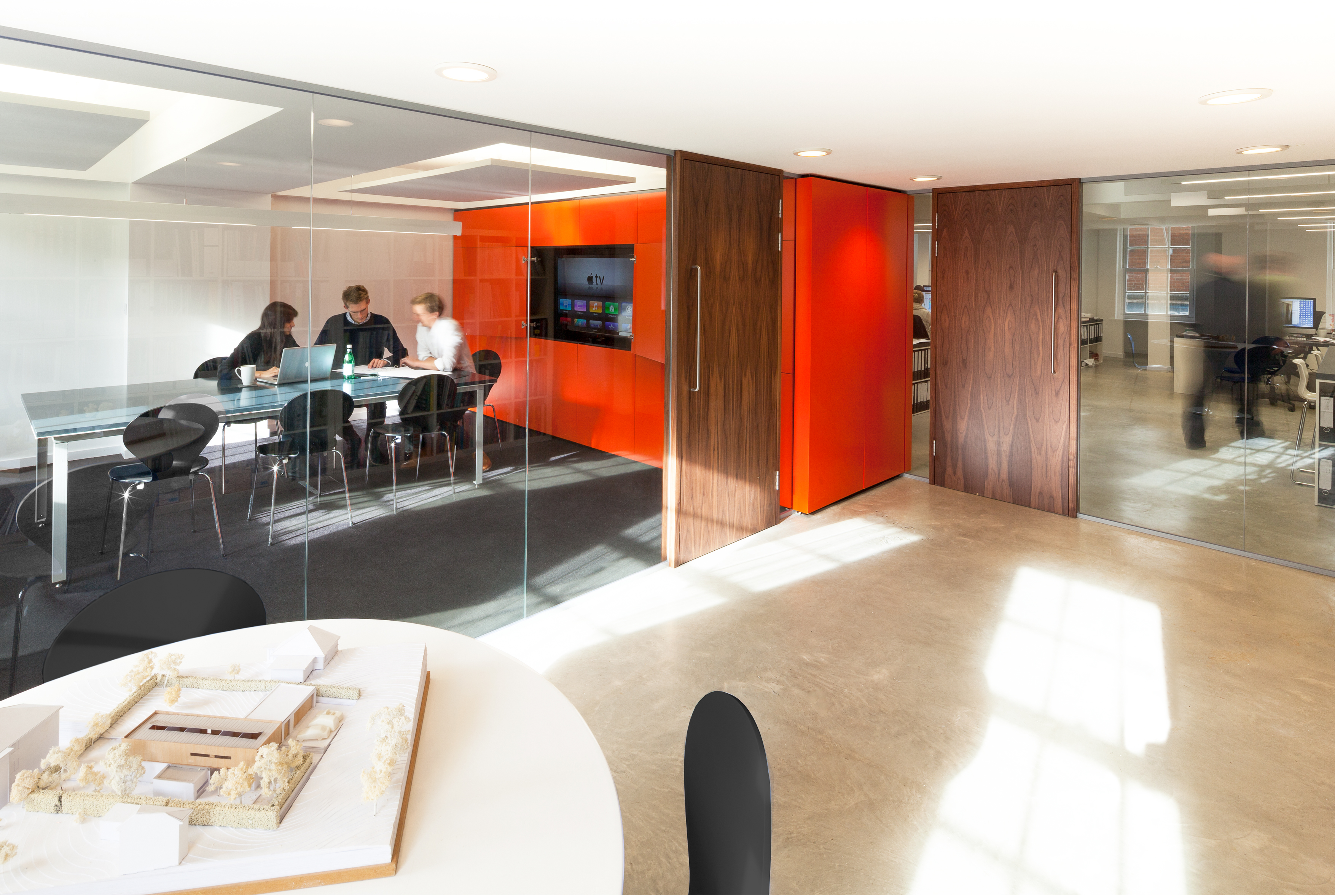 Creation of a contemporary architectural office with an open plan design studio, break-out room, and meeting spaces