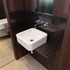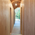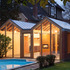 A wall of revolving triple glazed windows provides natural ventilation. The inherent character of the original outbuilding was the basis for a utilitarian approach to materials and finishes - predominantly rough sawn timber, raw concrete and stock engineering brick. The form of the studio extension consciously reflects the surrounding buildings and simultaneously integrates with the communal garden and adjacent pool.