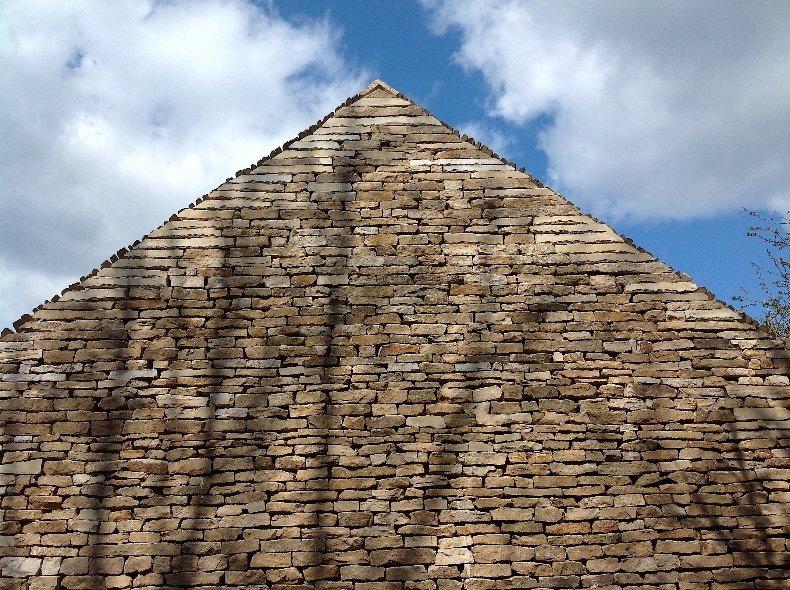 The stonewalls acts as a rain-screen. They are dry-stacked by a local 'Master dry-stone Waller' and was sourced from a local farm quarry. This is the traditional source for Derbyshire walling stone. The roof is also covered in the same coursed dry-stone with a seamless transition at the eaves. The roof and walls are in effect a 'brown construction', encouraging weathering and bio-diversity.