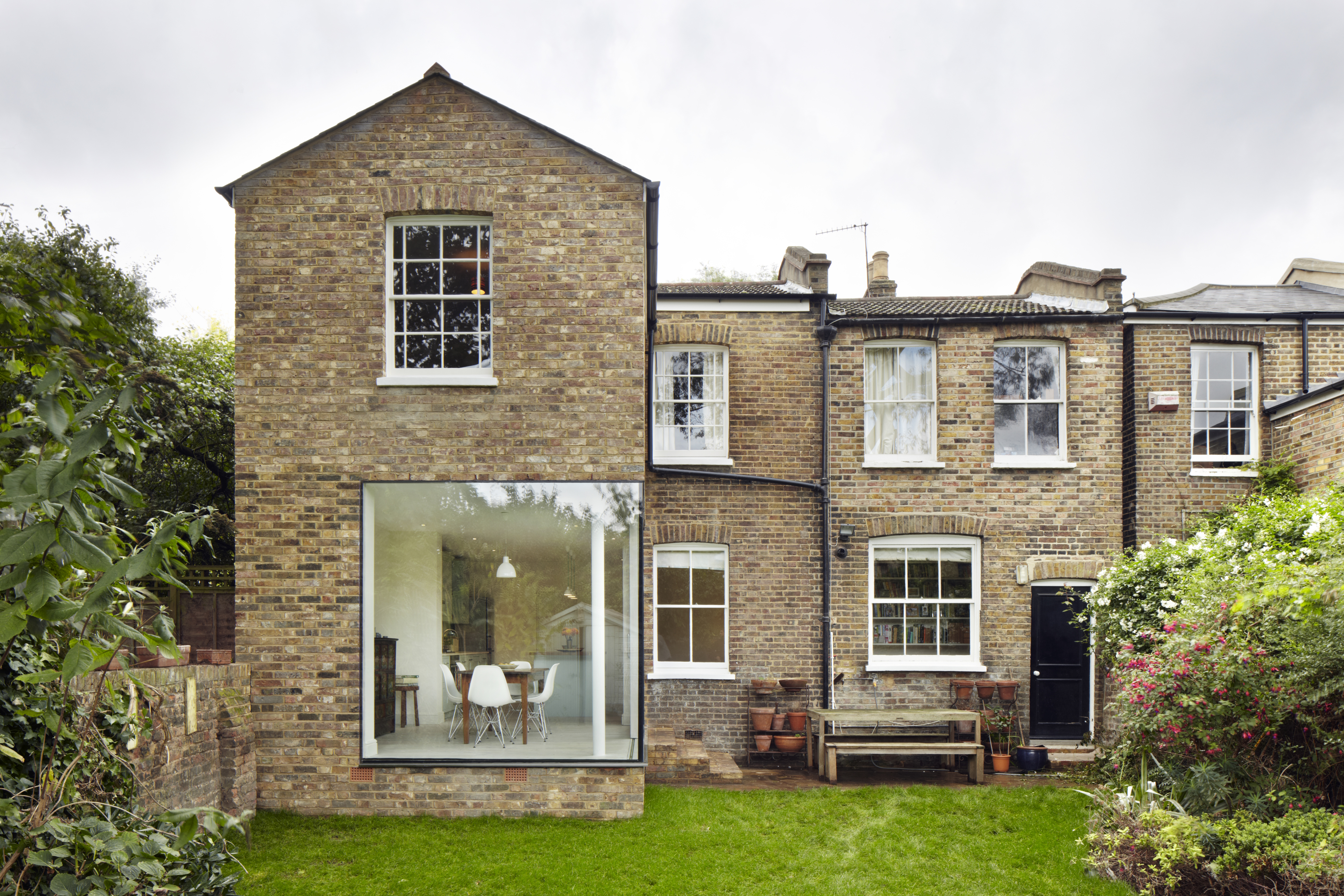 The existing house was poorly configured with limited access to the garden. To meet the growing family’s need for space, a two storey rear extension was built using salvaged bricks, blending seamlessly with the fabric of the existing building. The family gained a bedroom, new kitchen, and a glazed dining area.