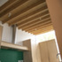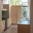 High-level glazing ensures that plenty of light floods in across the sloping timber ceiling, allowing the space at low level to be used for kitchen facilities and preventing overlooking of the neighbouring garden.