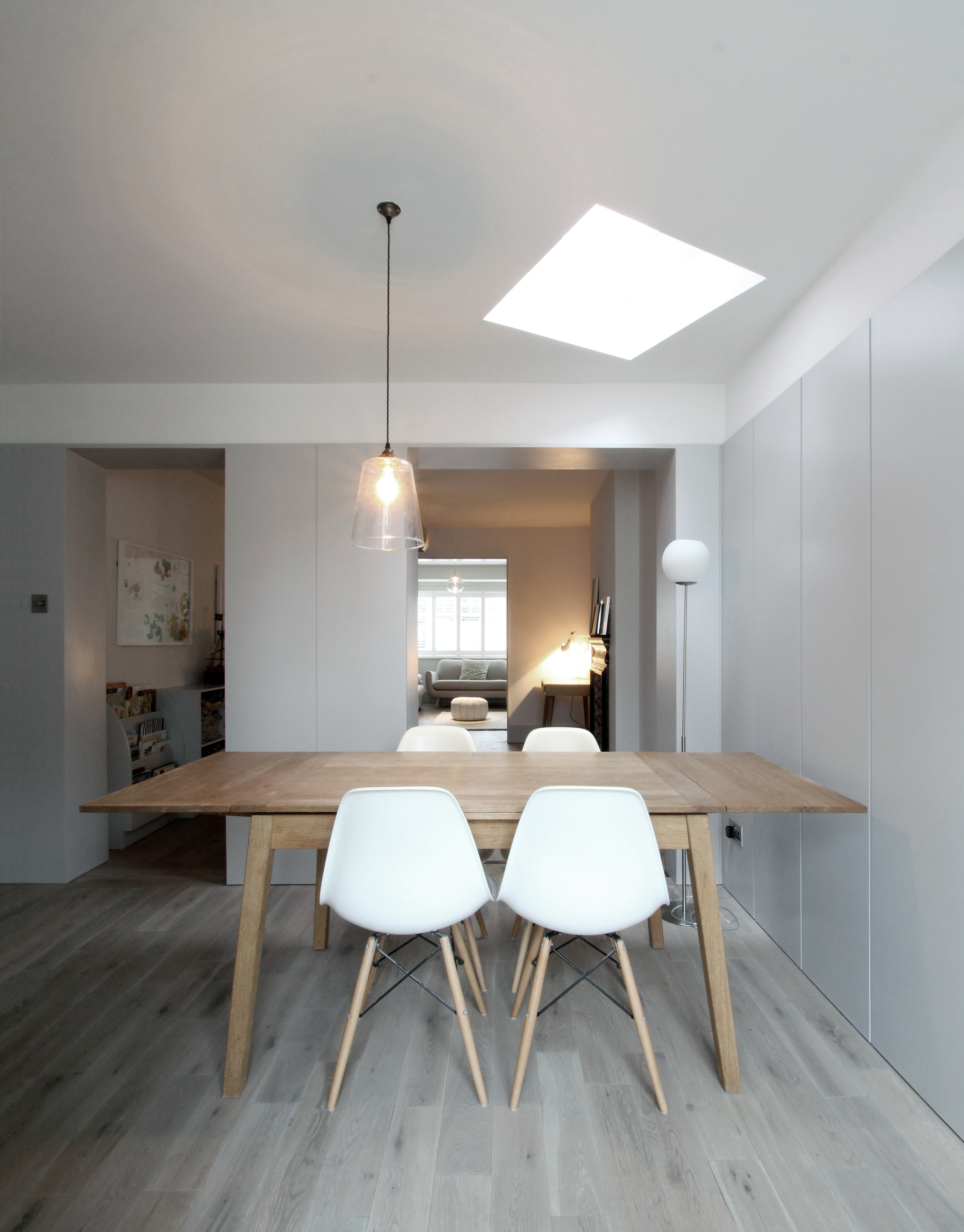 Although with a limited budget, the project sought to modify and bring into a new unity the entire ground floor of the house through a few precise moves: New openings were made in the existing fabric (as well as blocking up one) and a modest extension was built to produce an enfilade of four rooms which run from front to back of the house.