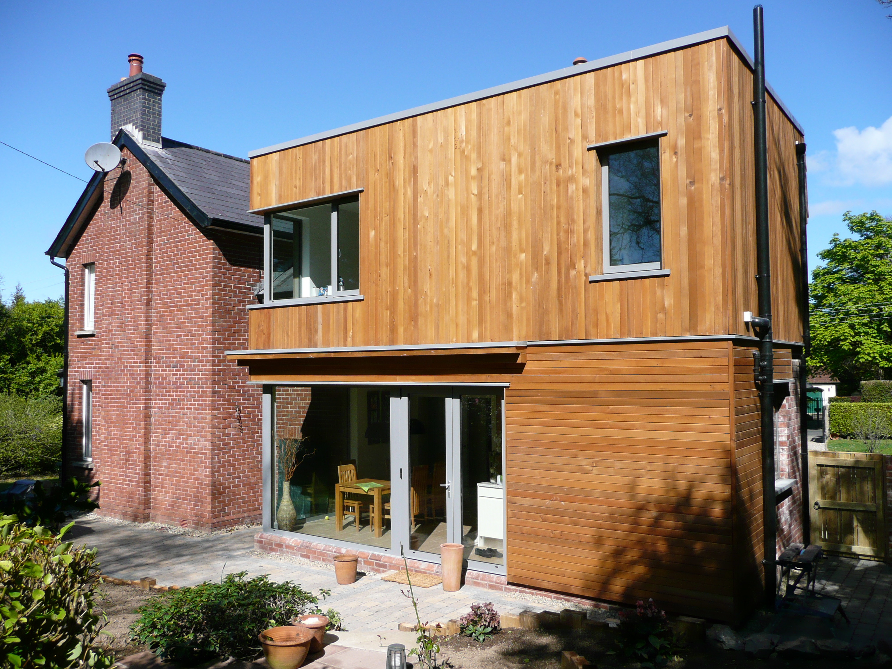 Two-storey rear house extension with an open plan kitchen/dining area on the ground floor and a bedroom above
