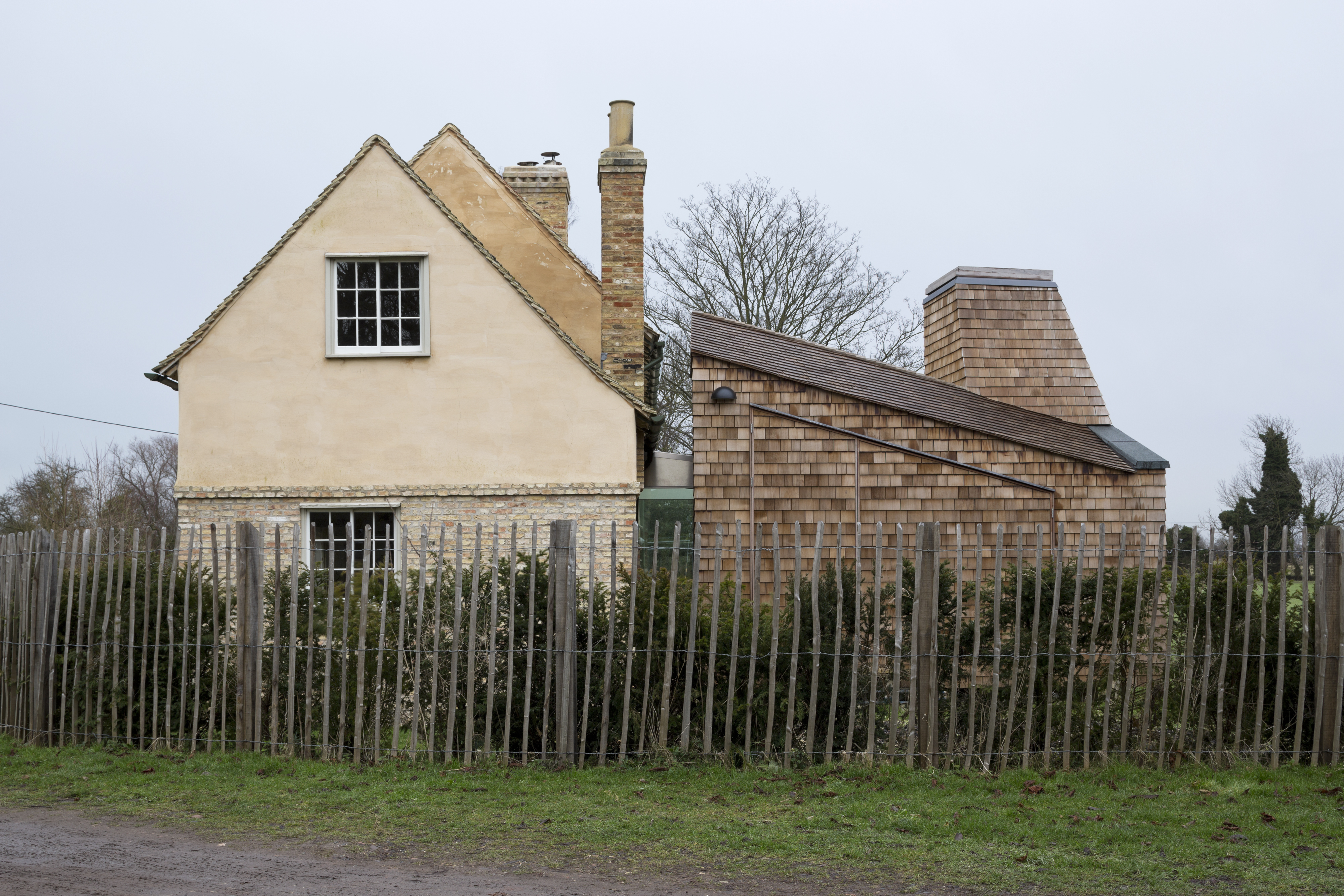 The new room is formally separate from the original structure and provides a different scale of space to that available in the house with views across the fenland to the east. This tiny extension required two refused planning applications and two appeals, eventually gaining consent in 2008. By this time rescue work was under way on the main building, with client and builder collaborating on a skilled restoration.