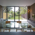 Frameless triple-glazed windows and a large sliding door frame the garden with views from the front door increasing the sense of space and garden connection.