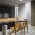 Industrial materials were exposed and celebrated such as black MDF for the kitchen, concrete blocks for the exposed blockwork walls and a concrete floor which also reduced construction costs.