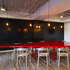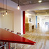 On the ground floor the walls and steel frame are dry-lined. The newly formed downstands work to define areas of exposed existing concrete slabs to the ceiling. A reclaimed timber floor (from an old school hall) runs through the ground floor and clads the reception / demo kitchen unit.