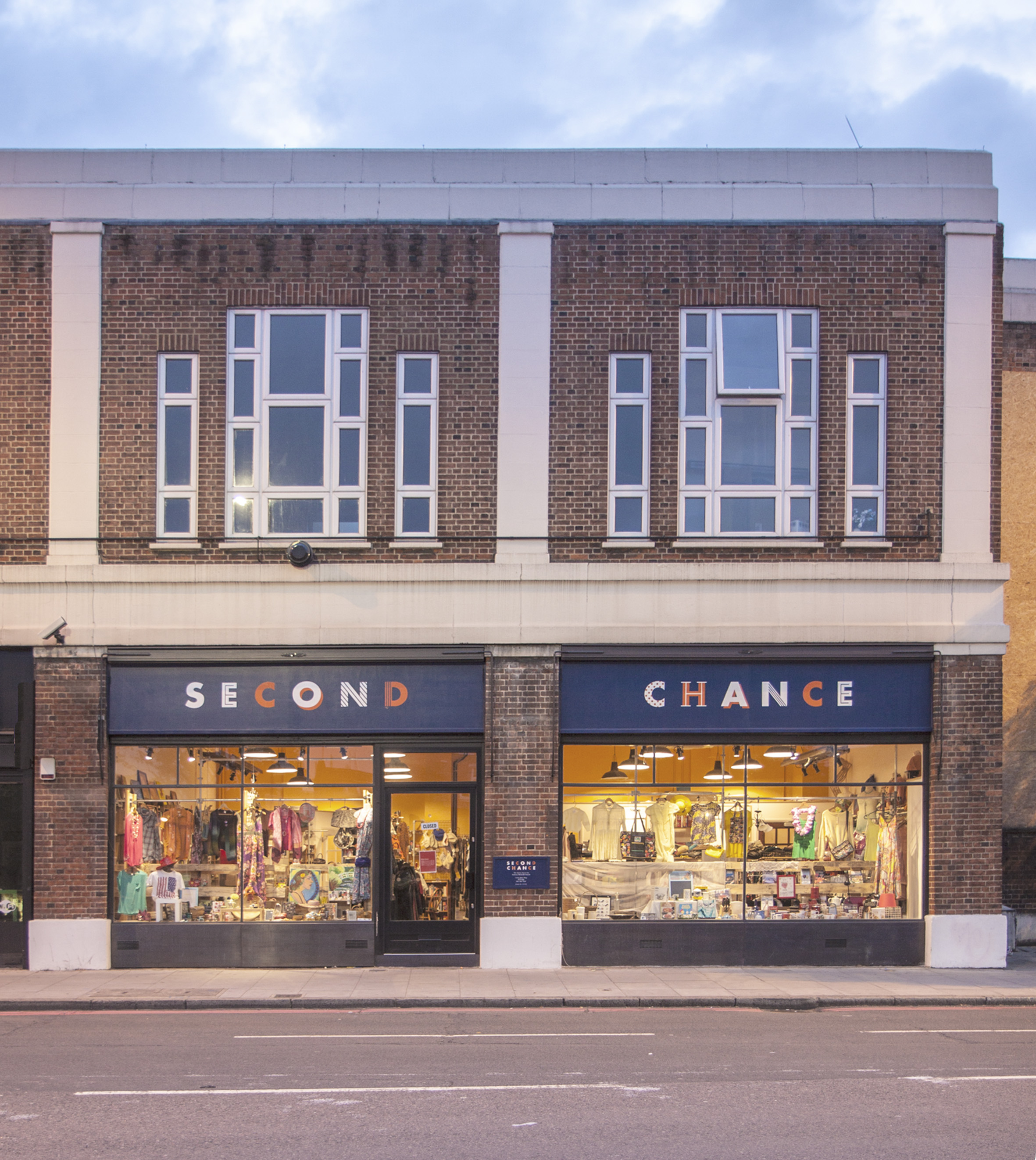 For Map Gift Shop, the practice looked to the building’s historical usage as a butcher as inspiration for a new shop frontage. At Second Chance, a ‘thrift’ shop, scaffold poles were found in the store’s basement and re-used as hanging rails; timber panelling was re-assembled in tiles to form the point of sale with apple crates used as shelving. For a fried chicken retailer, a kebab shop and others, new graphics and branding were created.