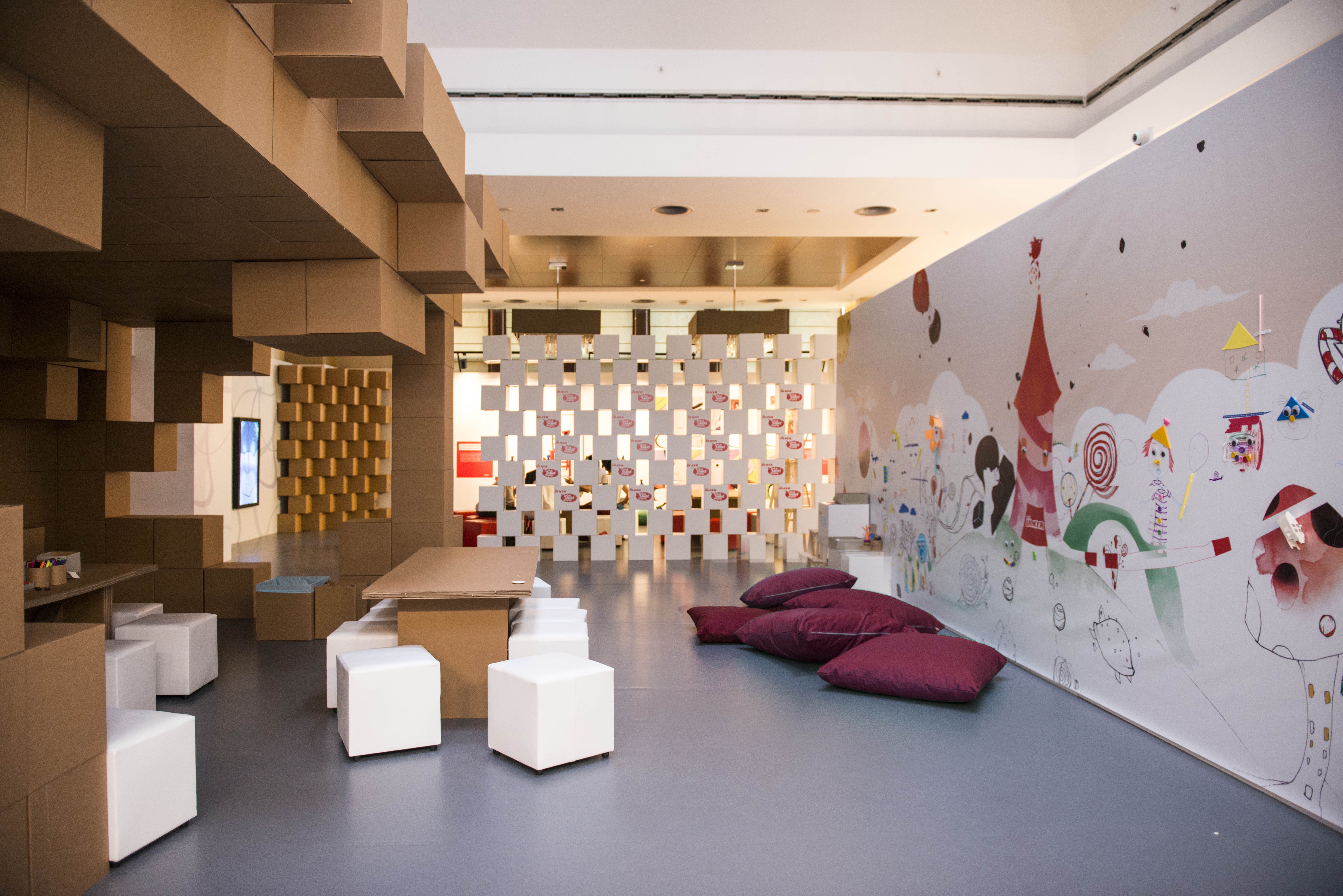 A workshop space, built using recycled materials, for the Ülker’s Children’s Art Workshop at Art International Fair in İstanbul 2015.