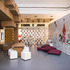Colours and materials are kept simple and consistent: beside Ülker’s corporate red only white and grey are used. A special more playful element is provided by cardboard boxes, which, like Lego-blocks, create the Castle, the Cave, storage, seating, etc.