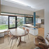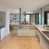 A new kitchen carves into and pushes out from the back of an old Victorian villa, addressing the classic garden-connection challenge by providing a kitchen worktop and window seat, perched above the long private garden.