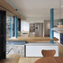 Internal shelves and kitchen units are all bespoke and tailored to the clients' particular needs. A series of large steps and planters connect down to the garden level itself.