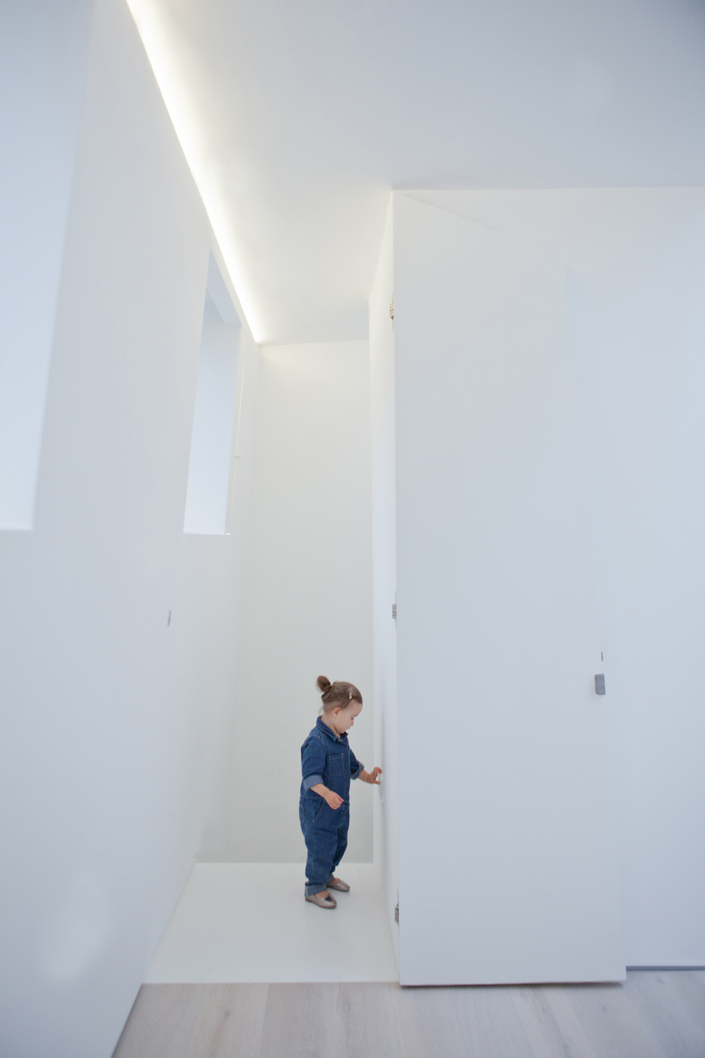 Innovative placement of windows allows natural cross ventilation and a Alice in Wonderland hatch allows access to the remaining part of the original. The elegant steel stairs were fabricated on site and float between the second and third floors without touching the walls on their ascent.