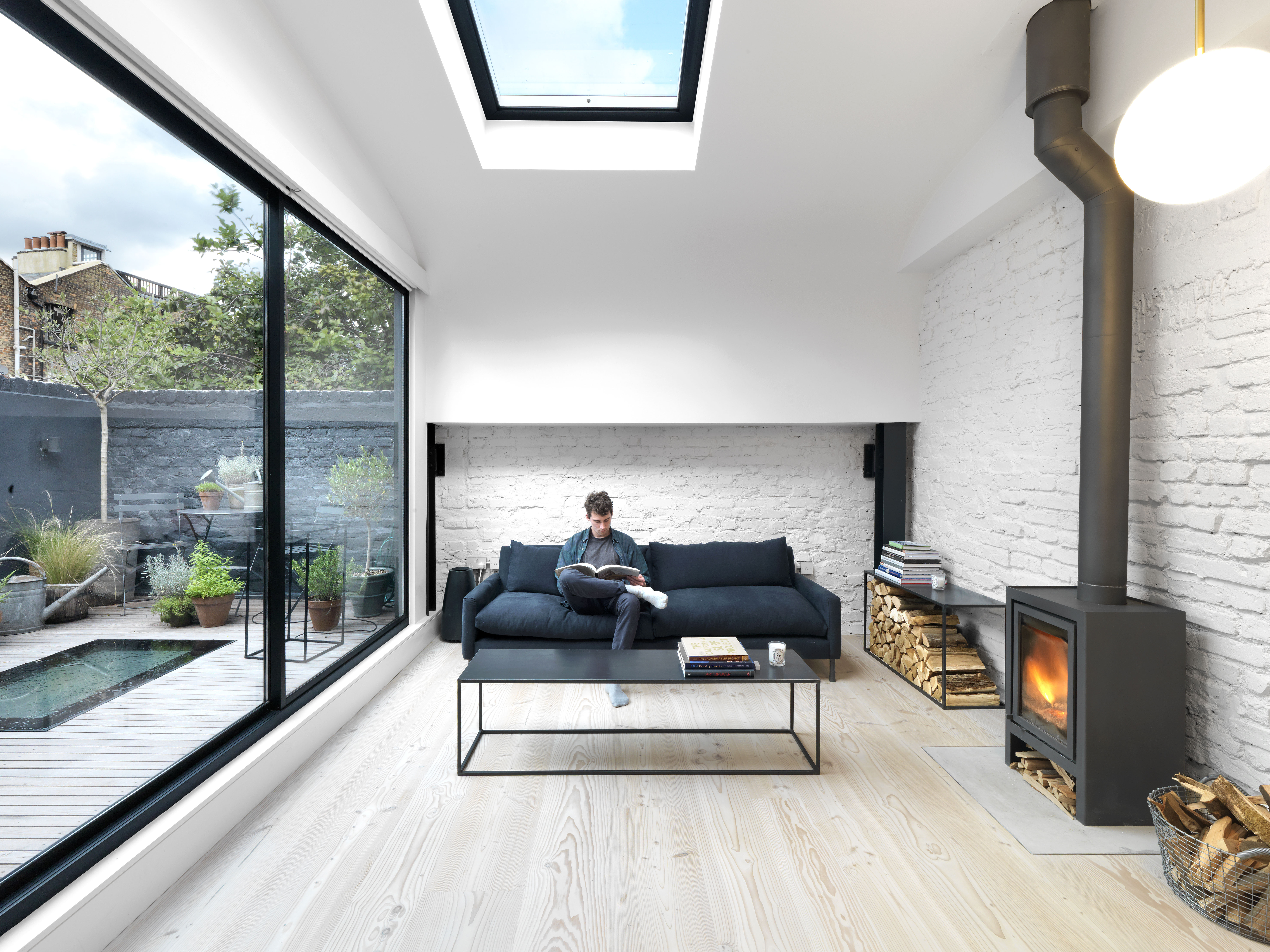 An entirely new arrangement of spaces was proposed and inserted into the existing volume, locating the key open plan living space at second floor and introducing a new terrace to provide outdoor space and draw natural daylight deep into to the kitchen and living area.