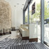 The seating area is distinct by a more contemporary floor finish, in concrete resin. The uneven and random edges aim to marry tradition with contemporary.