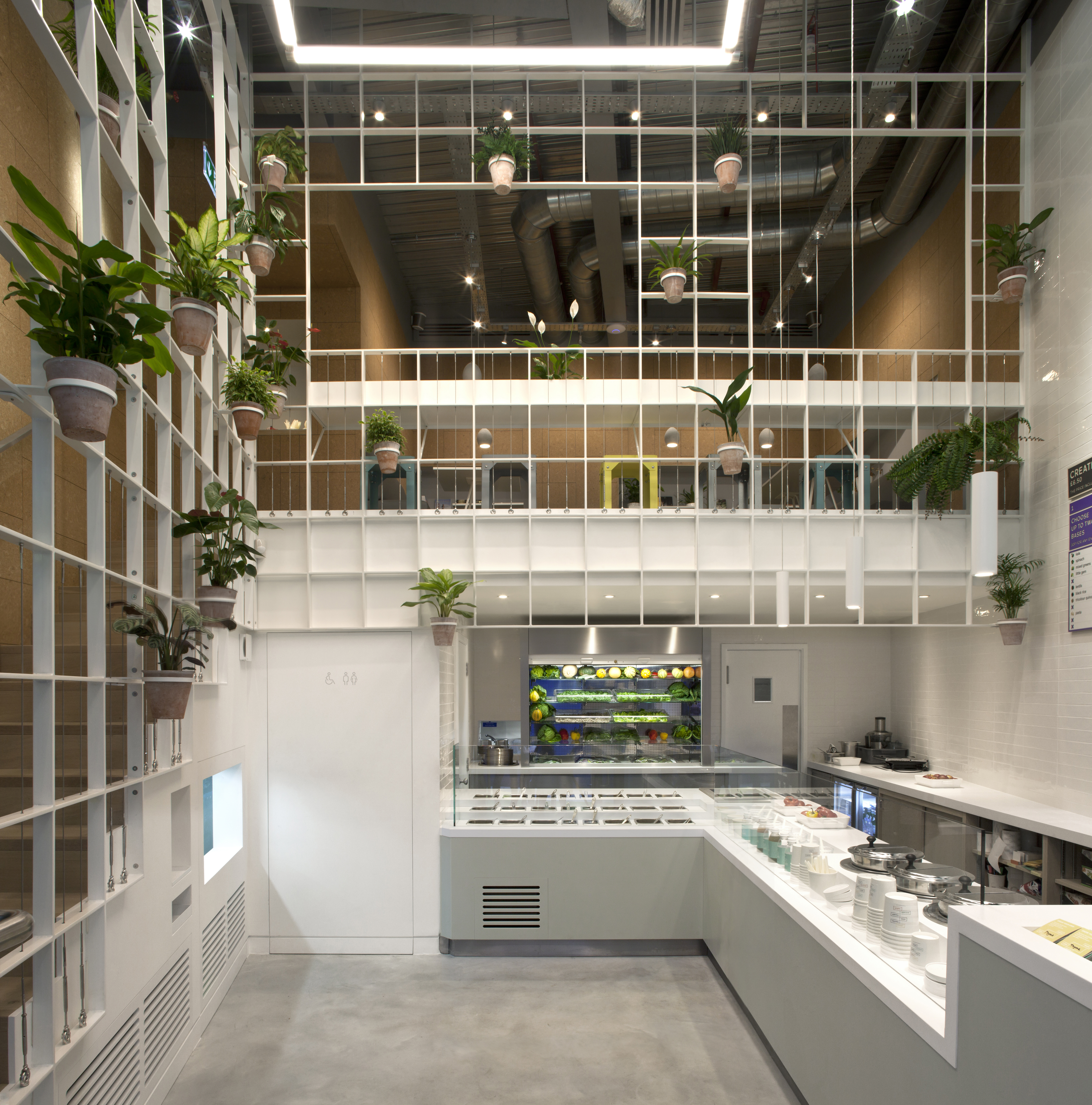 The challenge was to create a space that both accommodates our frenetic work rhythms and invites us to slow down. The architecture therefore had two tasks; to address multiple speeds of engagement, and to provide a neutral framework that foregrounds the various shapes and colours of the herbs, vegetables, fruits, and grains on its menu.