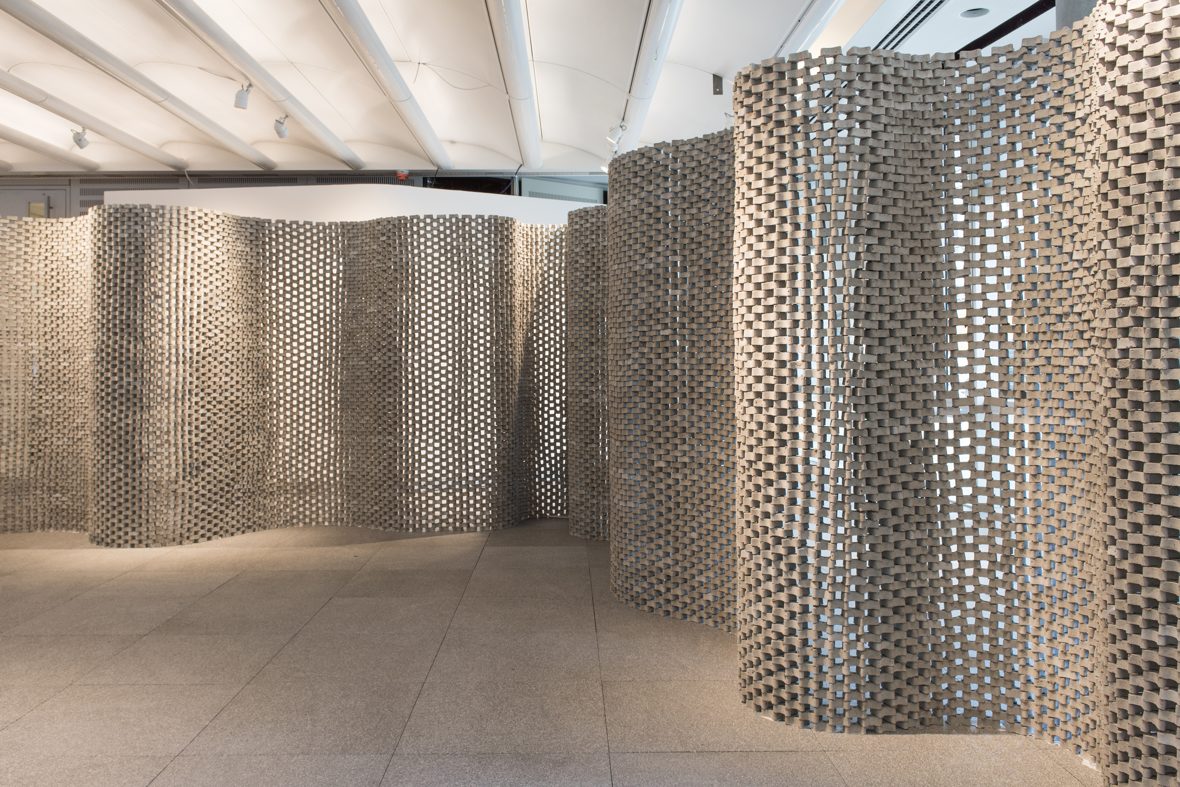 This curving wall made of concrete spacer blocks celebrates the unsung heroes of concrete. It was created for ‘Concrete Inspirations’, an exhibition at Arup about the innovative use of concrete.