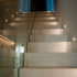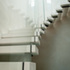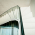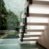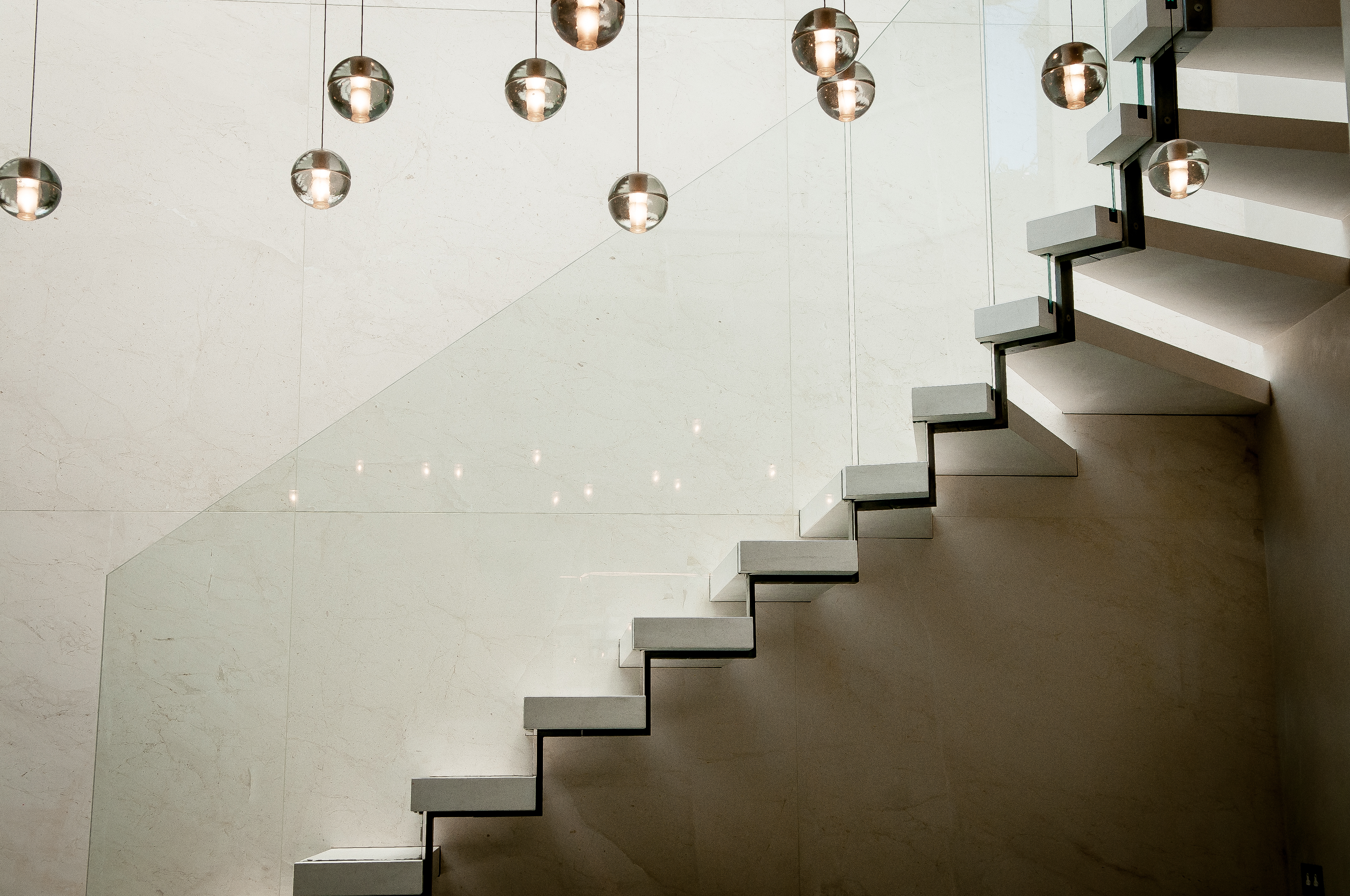 The open design pushes the properties of stone to its limits but allows light to penetrate through the stair through the glazed floor to the basement swimming pool below.
