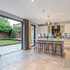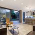 The works included enlarging the existing ground floor extension, infilling a corner by the boundary wall, to create a more open plan kitchen-dining family room, opening onto the garden, with new sliding doors.
