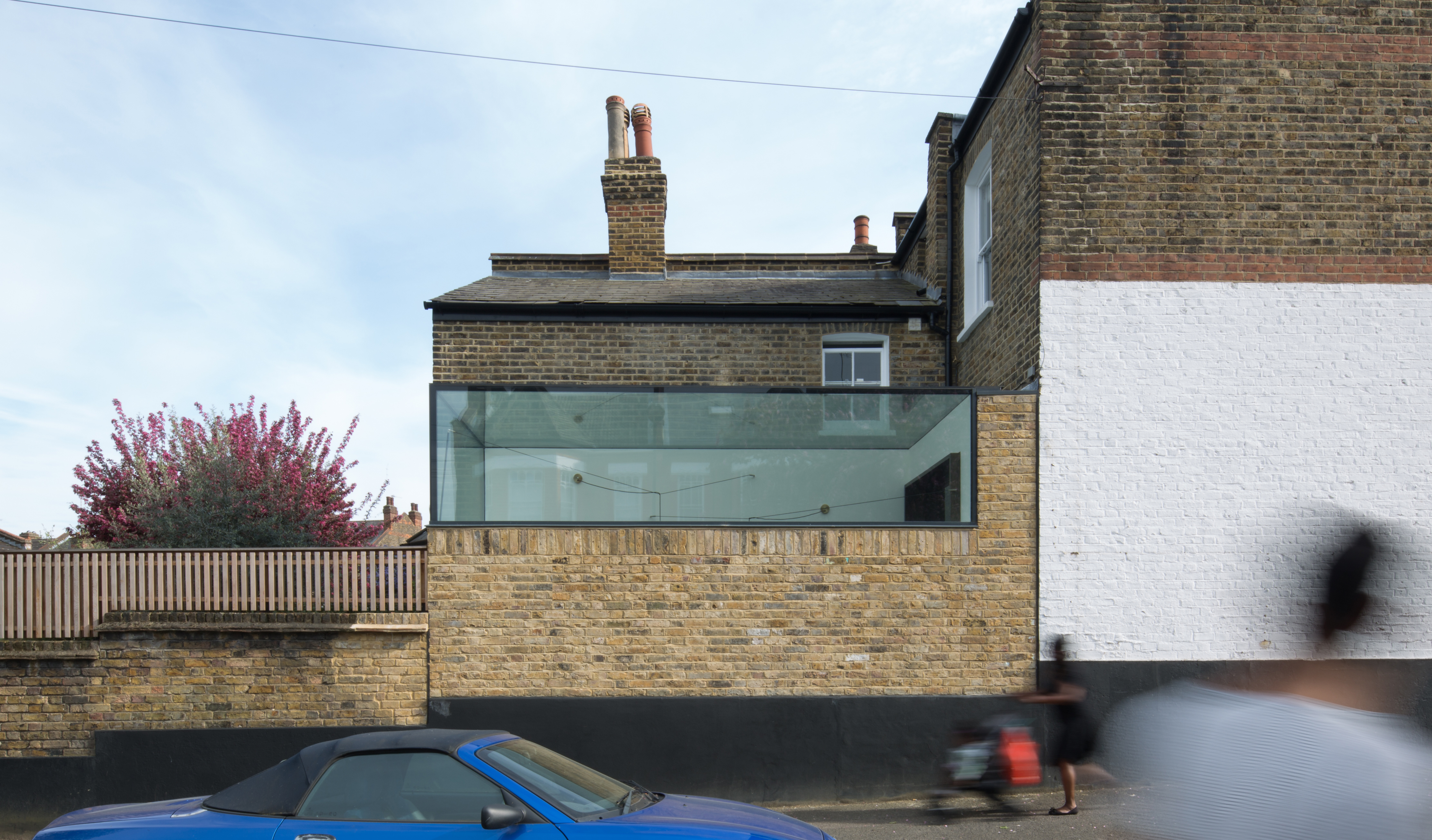 Shaded from the sun by the orientation of the existing house, this new frameless glazed element takes advantage of the unique view from this end of terrace property.