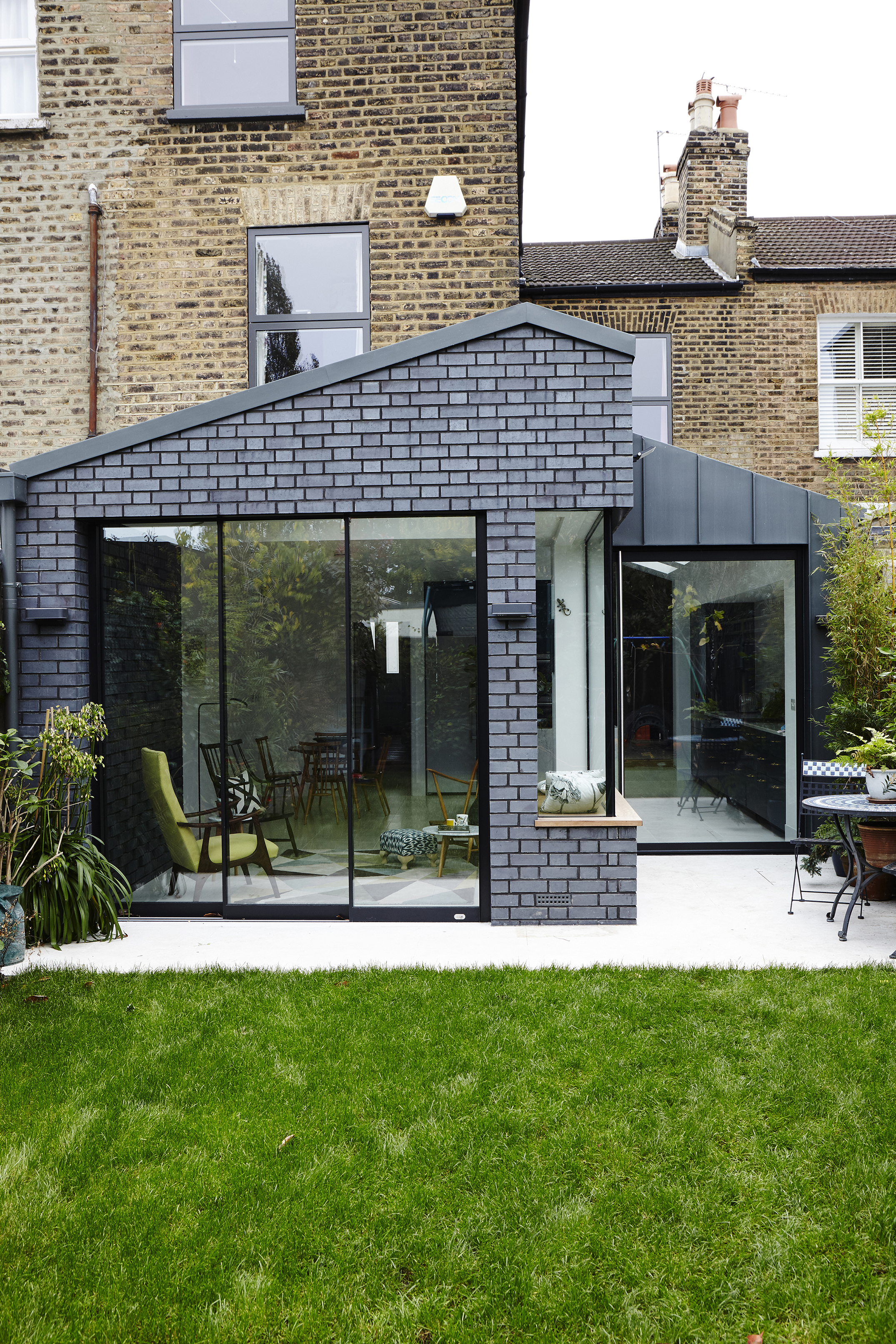 Linking the extension to the garden through the use of colour and materials was a key tool in making the space feel as unified and spacious as possible.