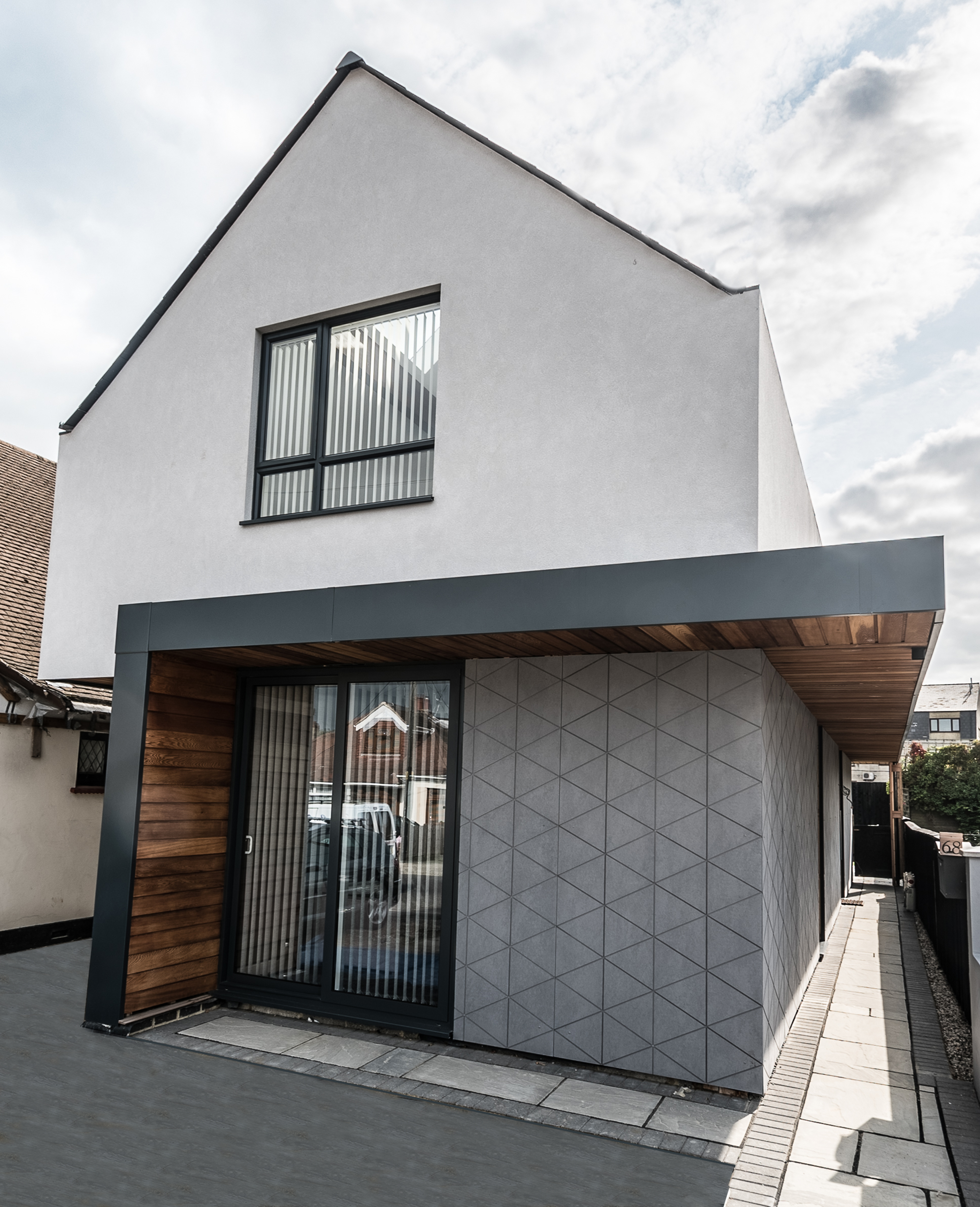 The form was achieved through the use of insulated panels (SIPS-Kingspan). This was hugely beneficial as it allowed control of the design from the office side and then reduced time on site. External materials included; Western Red Cedar, PPC Aluminium Pressings, Marley Eternit - Equitone Panels and Silicone Render.