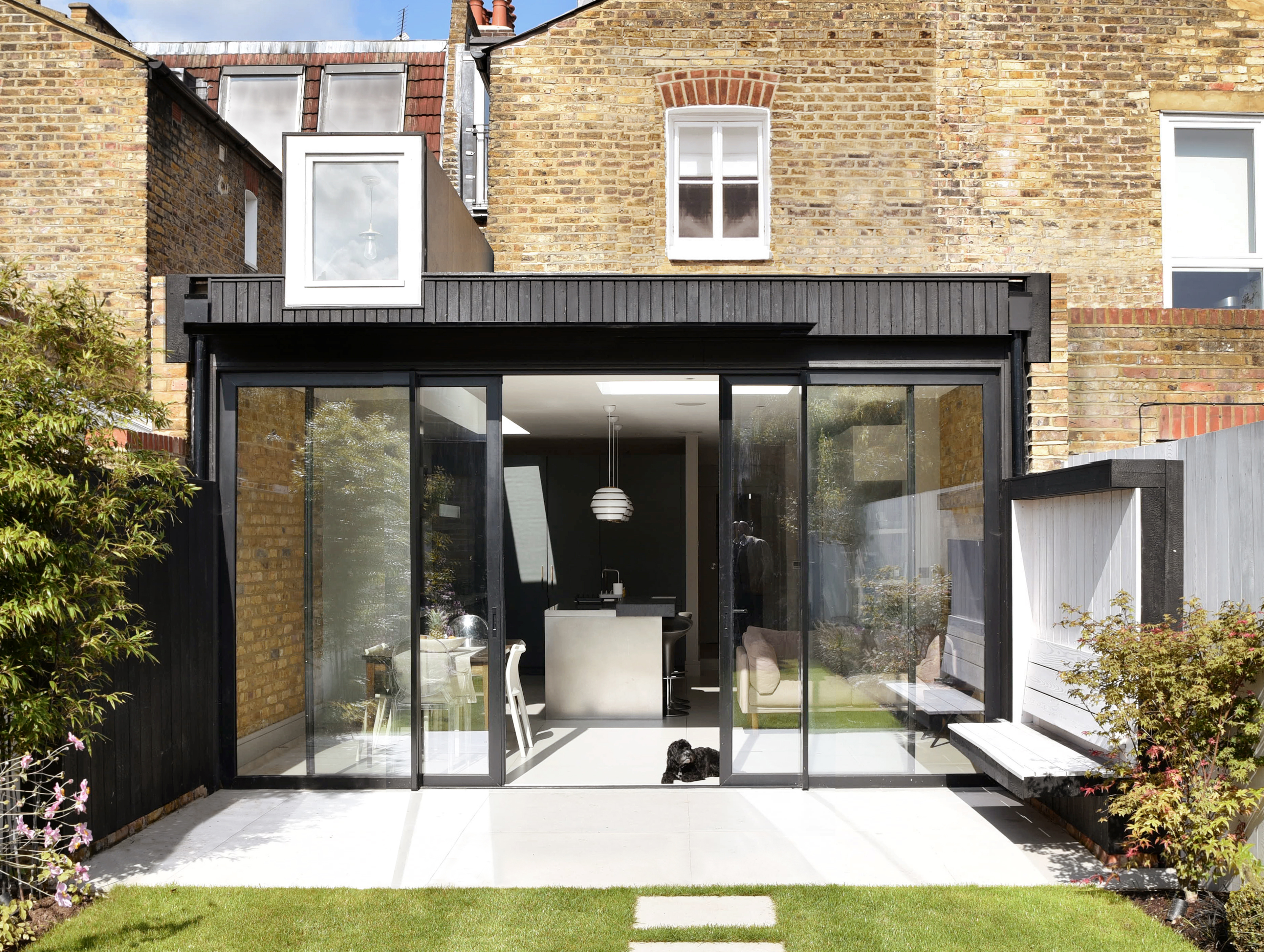 Simon Gill Architects was asked by the clients Mr and Mrs Anderson to extend their Victorian terraced house in Fulham to provide a new kitchen, dining and sitting area, cloakroom and utility room, with a new stair to the ground floor, and to construct a family room and office at the end of the garden.
