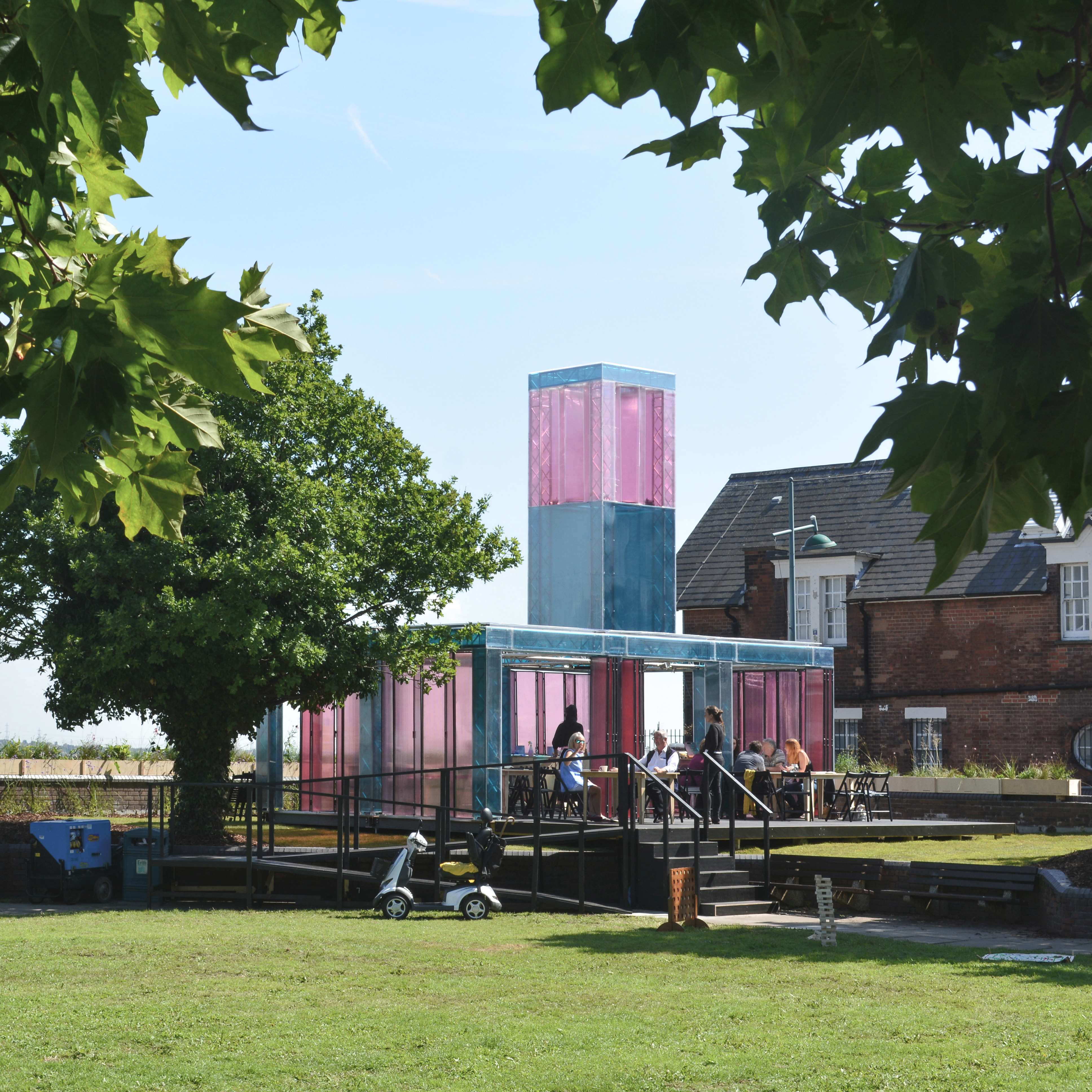 A temporary, demountable pavilion hosting cultural events, curated dinners and a community cafe, with the aim of celebrating the particular Thames-side location of Erith.