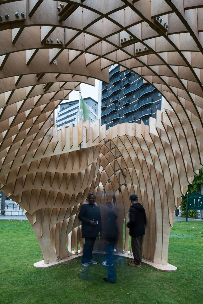 A flatpack CNC timber pavilion, designed by school children as part of an educational weekend providing insights into careers in construction, built by a multi-disciplinary team of architects, engineers and makers.