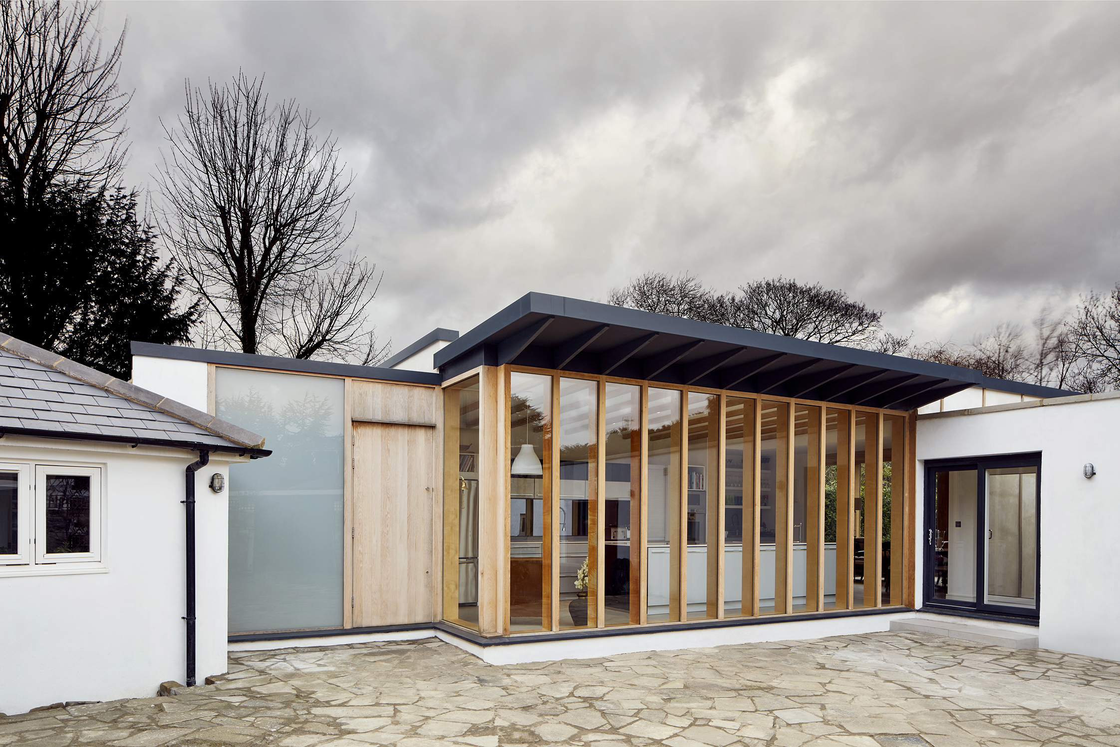 In this extension to a 19th century home, a birch ply structure was prefabricated off-site using standard board sizes, to help the client keep to a tight budget.
