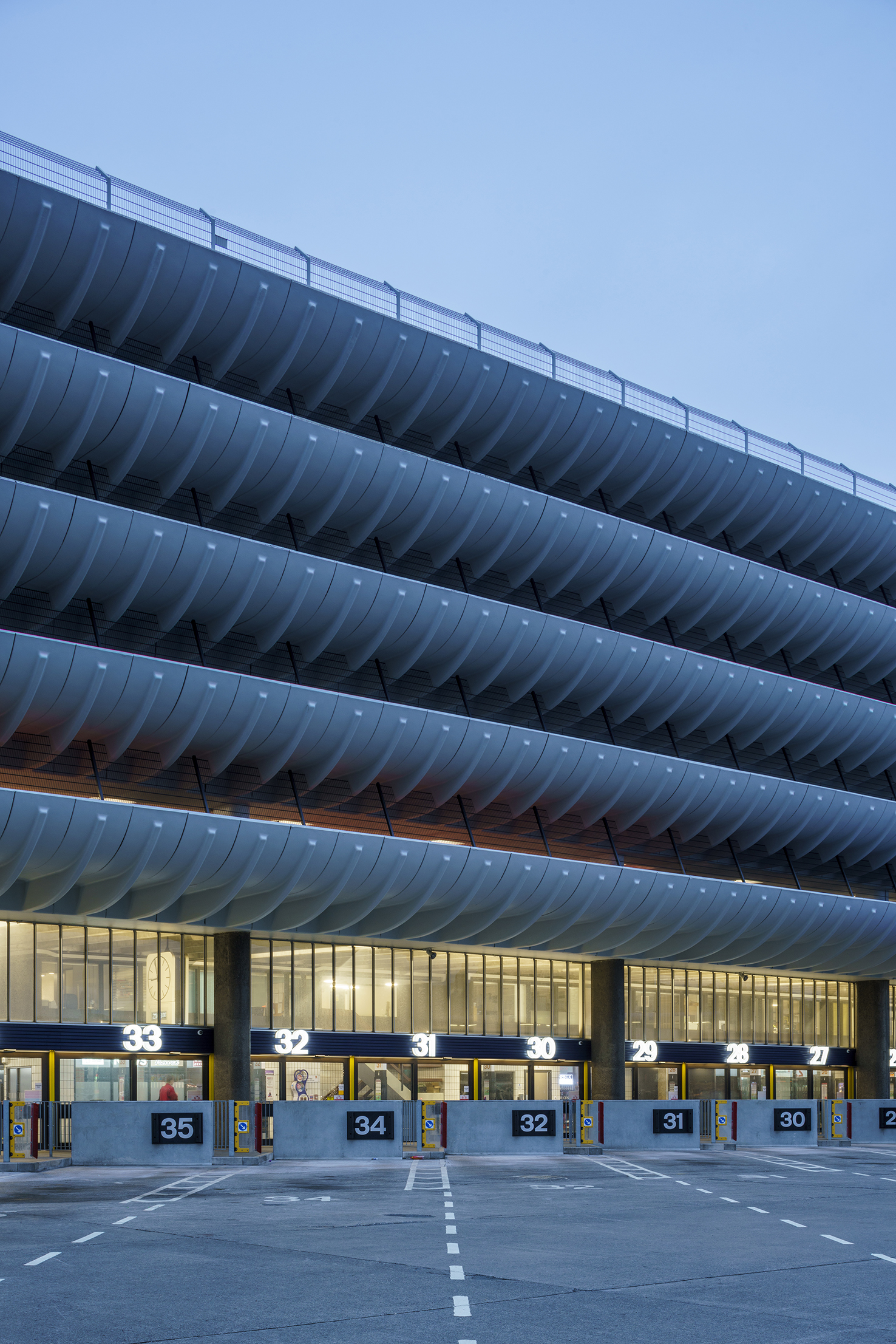 Clearing these spaces has the added impact of revealing the generosity – even grandiosity – of the bus station’s foyers, which extend dramatically, thanks to the curtain wall and concrete ceiling that span the length of the structure.