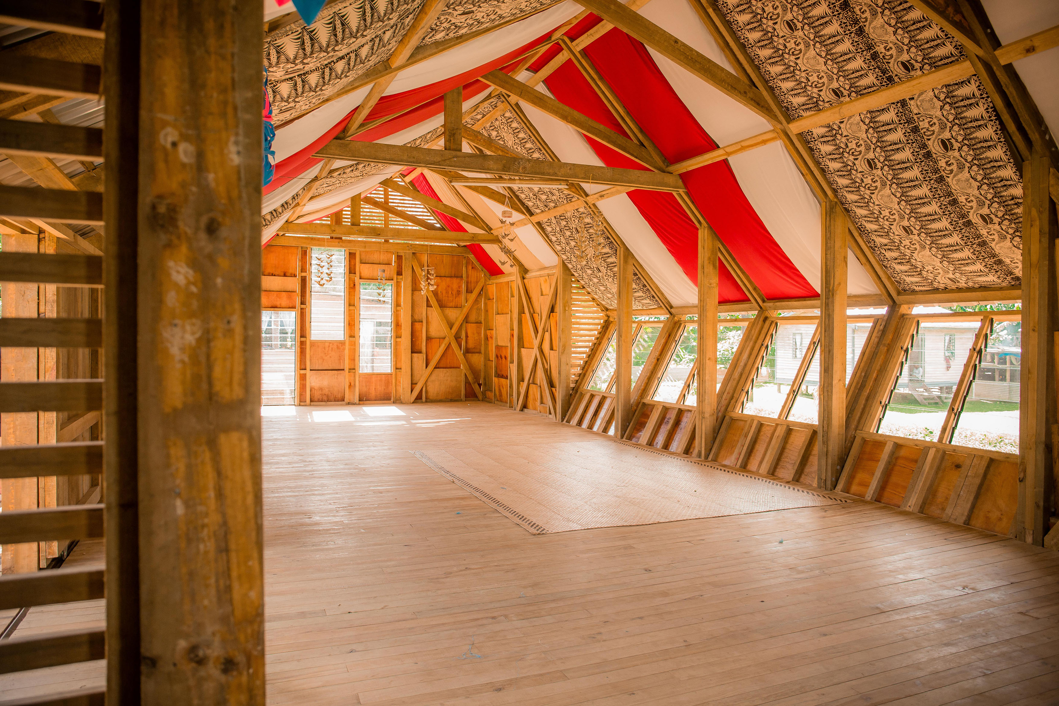 The design consists of angular portal frames, which create a unique and visually striking form. The angular facade to the rear allows a greater unimpeded floor space, adding lighting and ventilation as well as a floor-level, reclined, seating area. A large decking to the front of the building, functions as a spill out space for the village, as well as a place to stage choir performances and traditional Fijian mekes (dances).