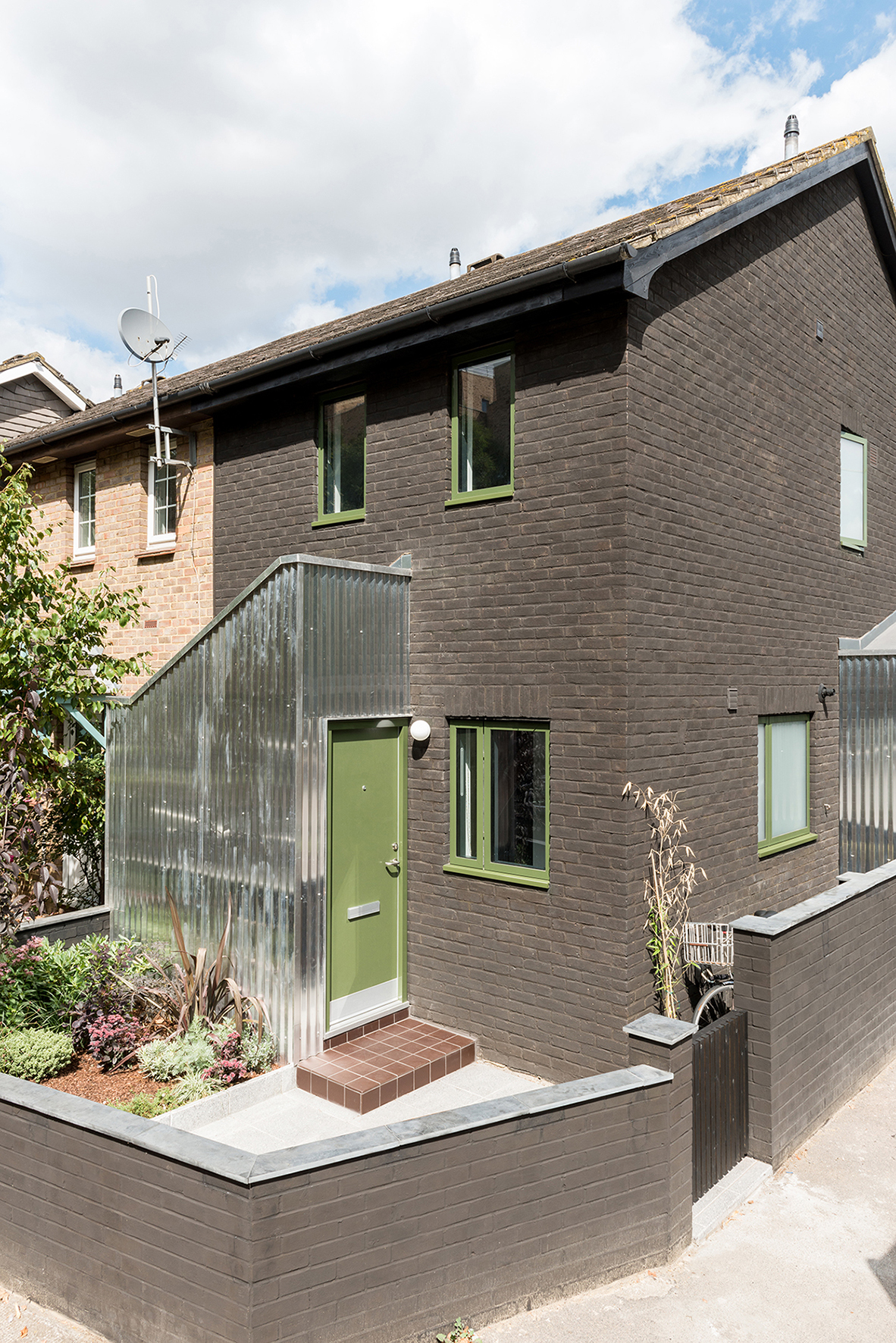 The exterior brick stain unifies the new walls with the old, distinguishing the house from the rest of the terrace. The corrugated aluminium emphasises the pitched forms of the roof while the material reflects the surrounding urban landscape, vegetation and sky, changing with the light.