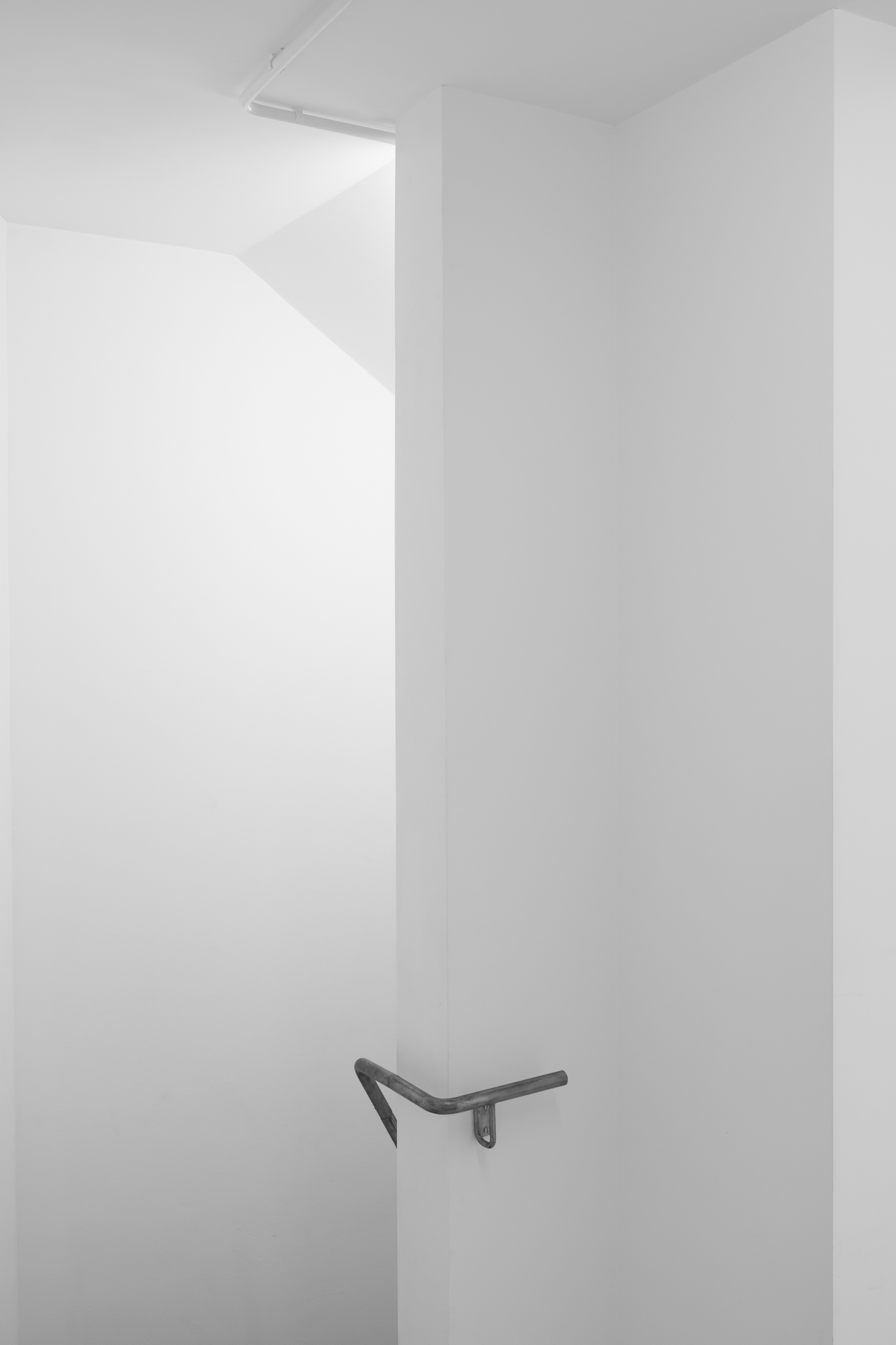 Detailing throughout the project remained simple and direct, and in turn efforts were focused on creating subtle spatial connections and clear thresholds. Faced fixed lighting conduits and an elegant mild steel handrail unfold across the spaces disrupting the whiteness of the gallery rooms. In questioning the relationship between the gallery and the street, the scheme develops the idea of a public interior, notably explored by Tony Fretton at the Lisson Gallery, that simultaneously declares the space as an extension of the pavement and brings passers-by into the gaze of the gallery.