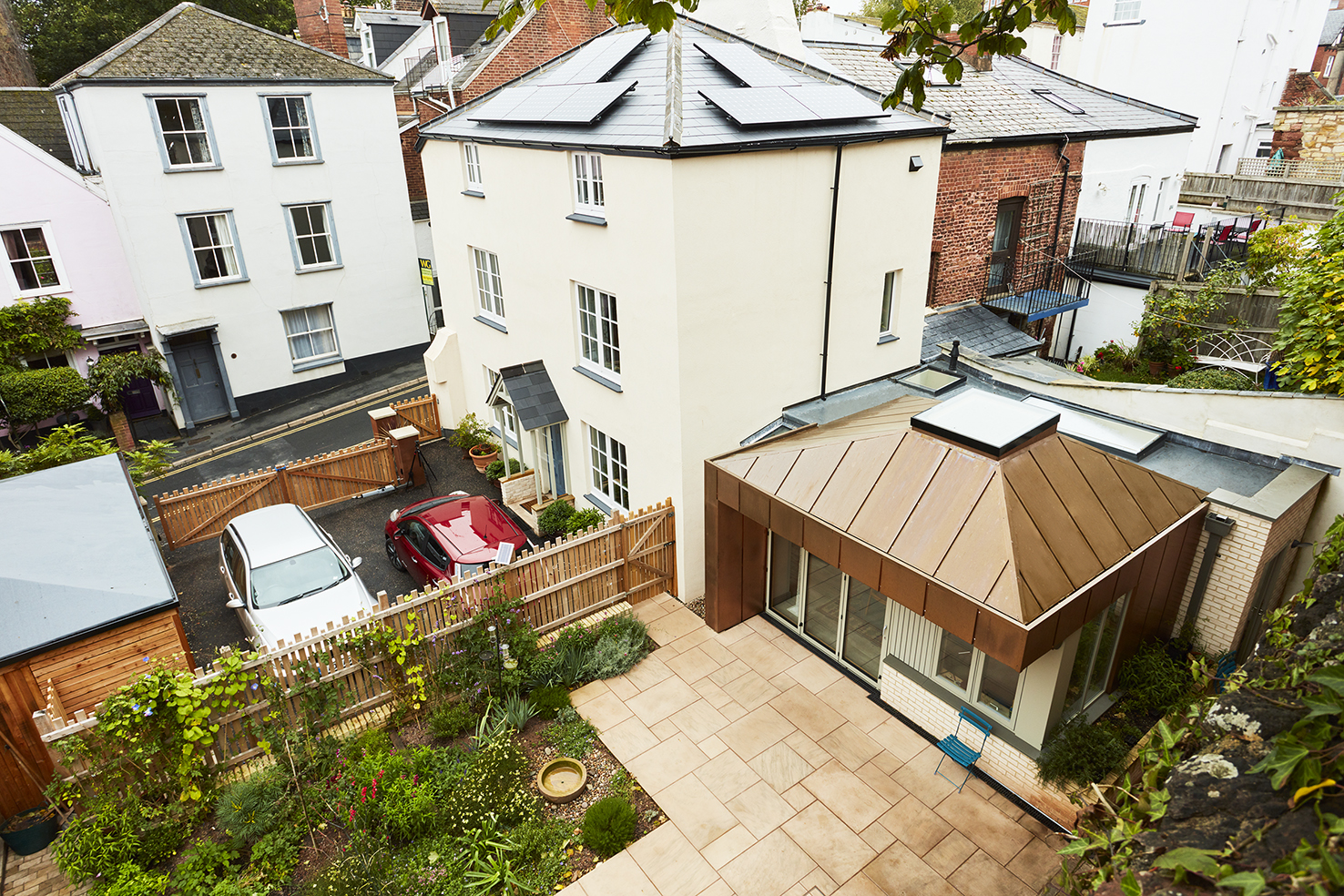 Like a finely crafted jewel this copper clad extension sits delicately between an historic Georgian townhouse and Exeter’s Roman City Wall, a Scheduled Monument.