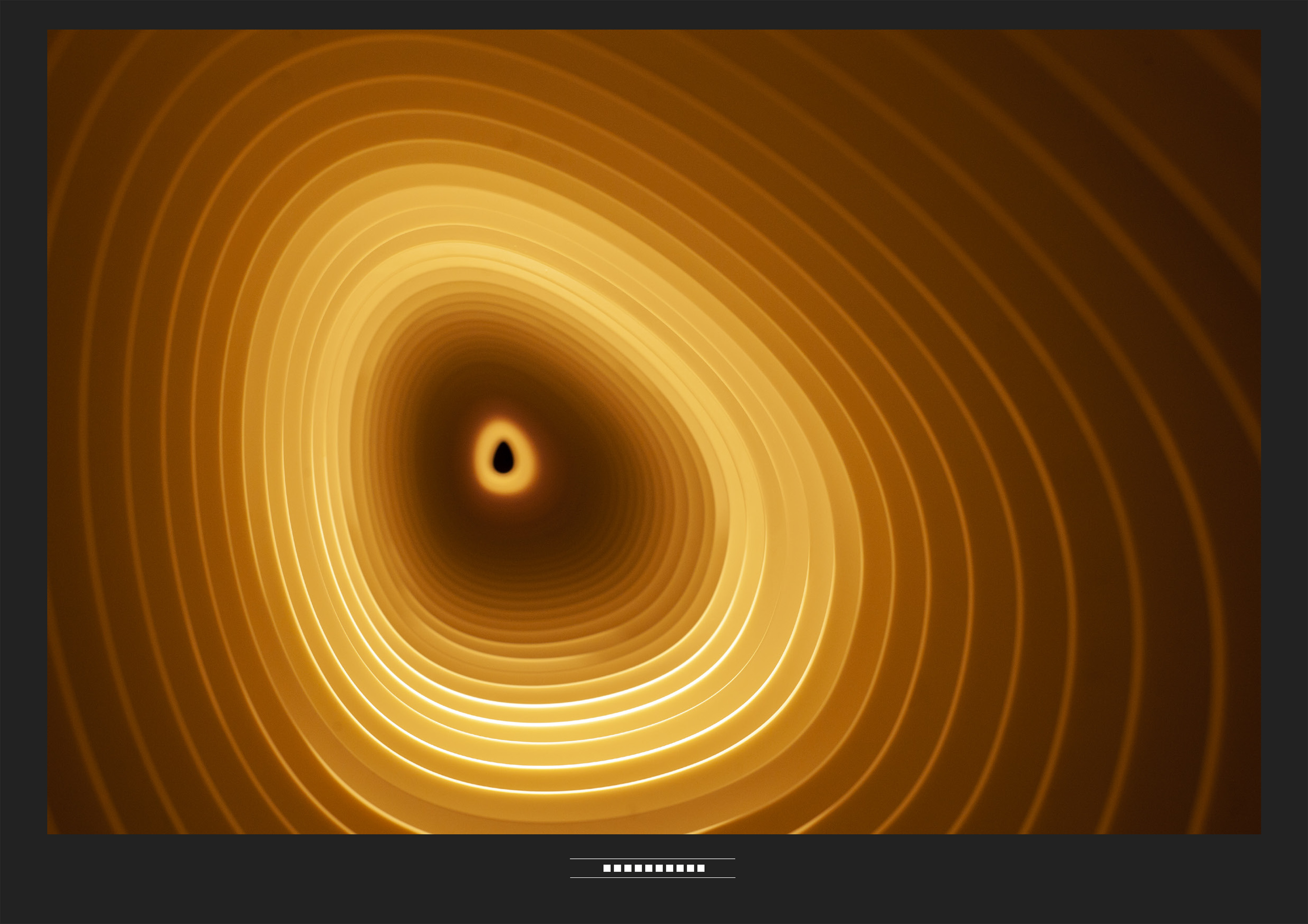 The form of the sculpture takes inspiration from George Eastman’s Kodak factory, which was located in Clerkenwell at the end of the 19th century. The installation is a study of depth and perspective, taking its inspiration from the role that aperture size plays in our perception of depth in photography.