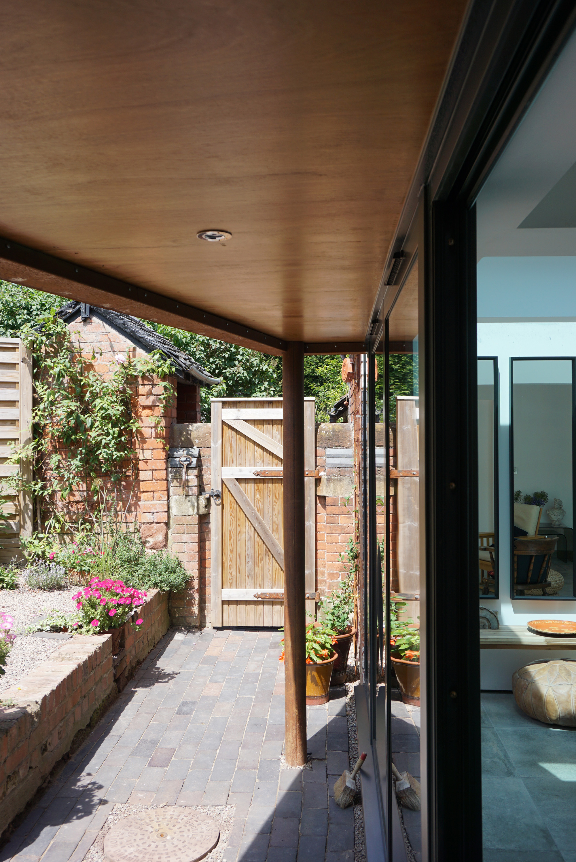 The roofline profile echoes the terraced pitched roofs which form the background context. A glazed junction helps to separate the new infill extension from the existing brickwork, providing a defined break between new and old. The use of Corten for the main facade material helped us knit the new into the colour palette of the existing housing, this use of weathered steel and its rich patinated orange tones also references the original railway heritage of the house along with a subtle nod to ‘Gingerbread’, which is something Market Drayton is known for.