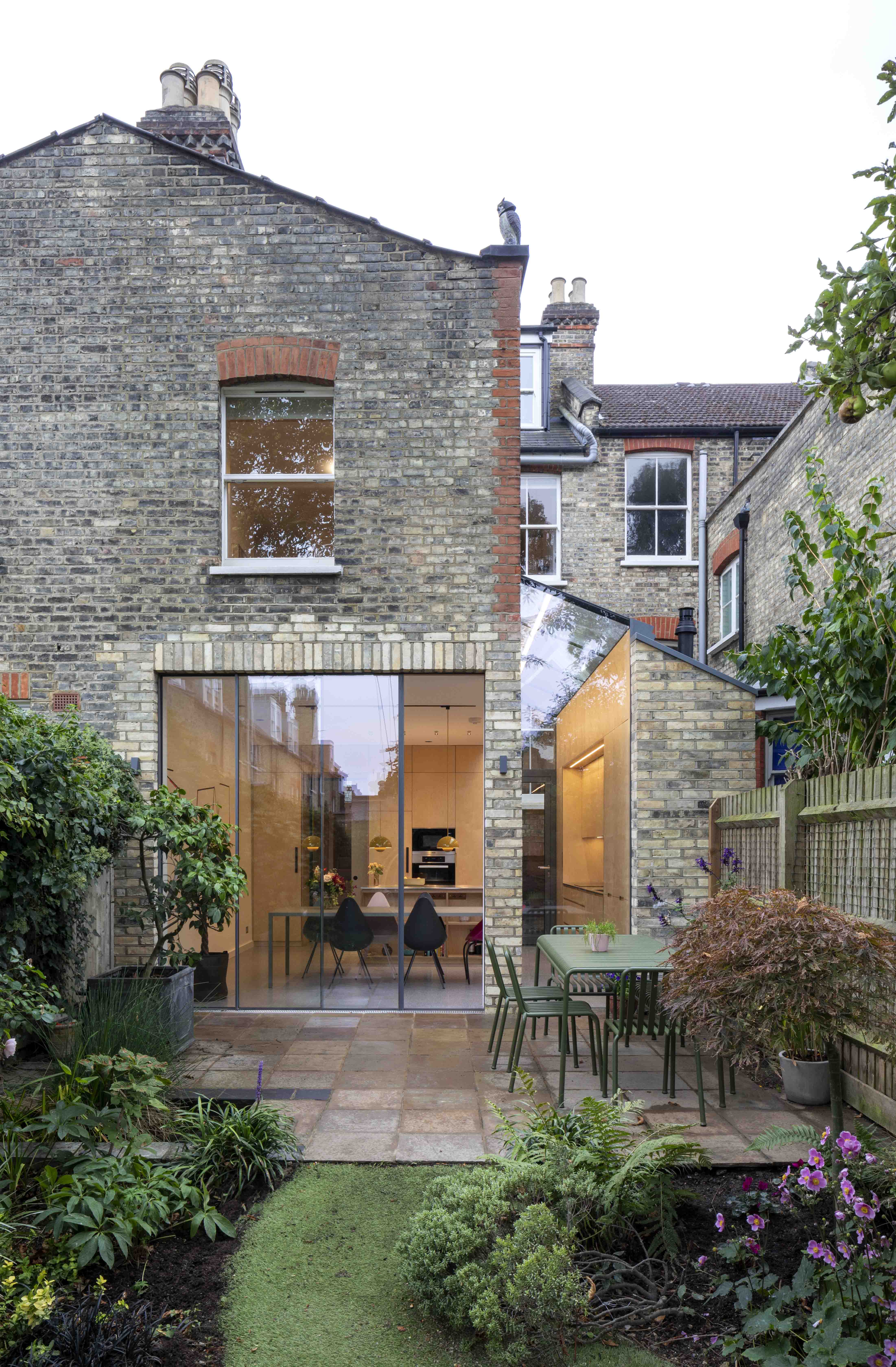 The new extension stops short of the back wall of the main house, so that the original elevation of the main house maintains its visual and physical integrity as well as access to air, light and views back into the garden across the new glazed room. A palette of natural materials is selected combing Birch ply, Terrazzo tiles and stainless steel, to create a calm setting to the revived room within the garden.