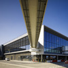 The multi-level scheme is contained beneath a curved floating roof, supported by slim columns at the perimeter edges. Passengers depart and arrive in a terminal building which offers generous spaces and views across the airport.