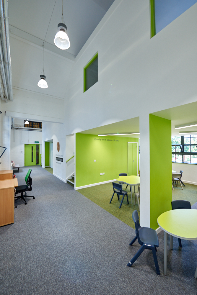The existing space was used as an open plan nursery play area. The brief required a learning resource space and a SEN provision teaching spaces, both of which were to be flexible and allow for re configuration for different uses. The school also wanted to include a staff meeting and office spaces.