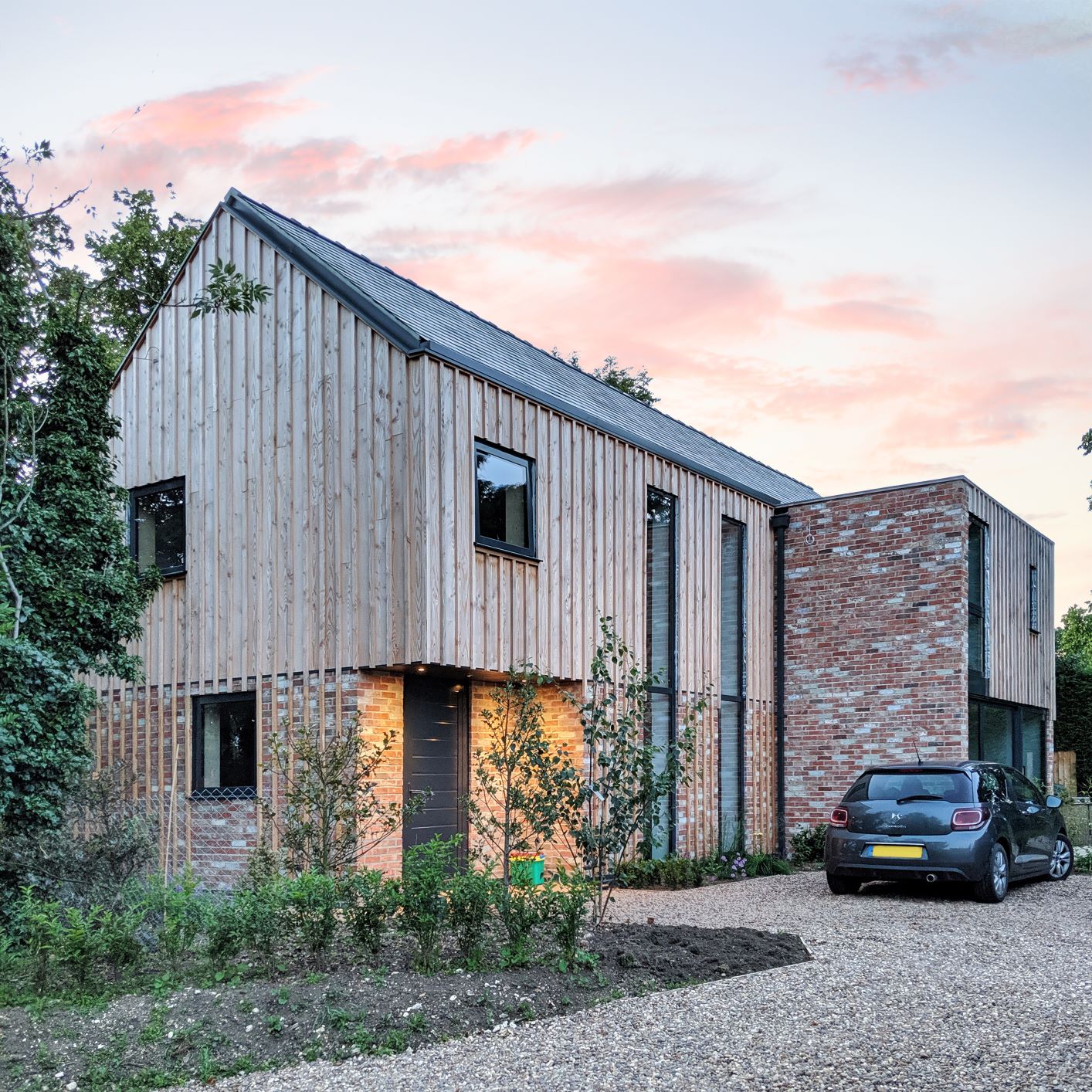 The house utilised SIPs panels filled full of insulation made from rapeseed oil, making sure the house was built from the most low-embodied energy materials. The larch board and batten cladding was invented and installed by Campion Design to tie together the reclaimed bricks and the timber to reimagine the verticality of the surrounding context and assimilate into the verdant landscape.