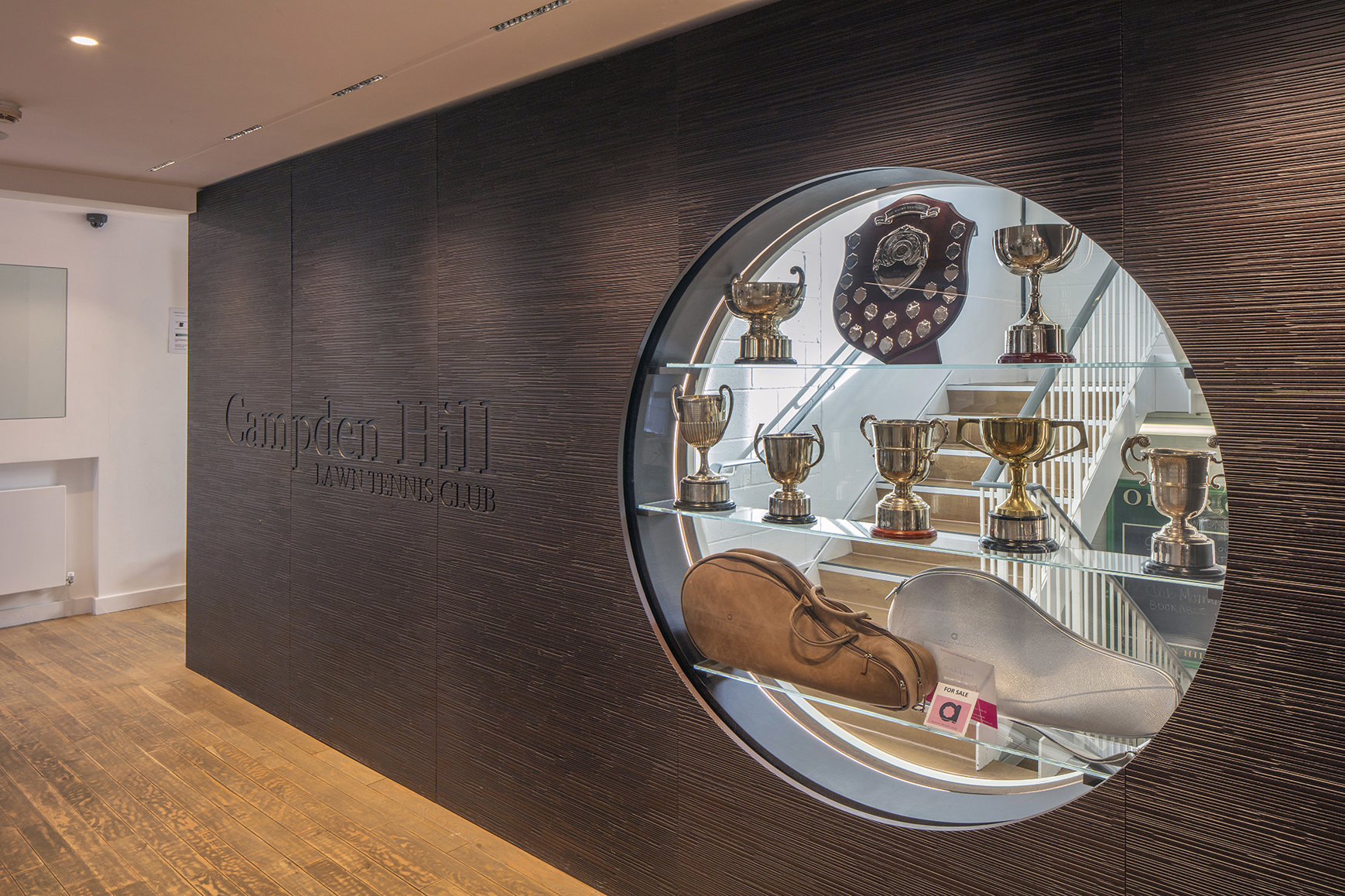 Featuring an open reception, light and bright office, display cabinetry for trophies, and a comfortable multi-purpose lounge. Conceived like an illuminated trophy display, a new circular vision panel opens the reception to the stair and lift lobby thus creating transparency and allowing view across. Large glazed doors and windows open views to the gardens and tennis courts outside. The multi-purpose lounge is a highly flexible space that can be configured as a relaxation area, meeting space, cinema room, formal dining space or games room. Purpose-design built-in cupboards accommodate furniture for the various uses. The project was accomplished thanks to a close collaboration with the Club's Committee and Jane Flynn for the furnishing.