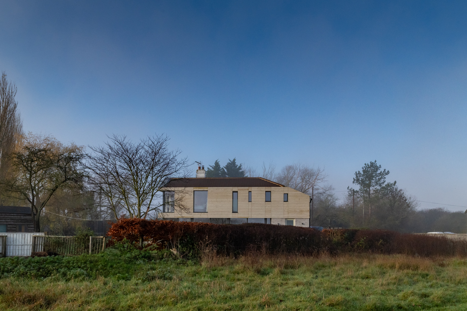 The practice found efficiencies by removing superfluous construction layers by re-arranging and simplifying constructions systems with a view to reducing waste. The roof is unusually pitched and warm with a ceiling installed over exposed timber, similarly the walls are 400mm thick fully filled with mineral wool utilising specialist ties to reduce the need for further internal or external wall insulation.