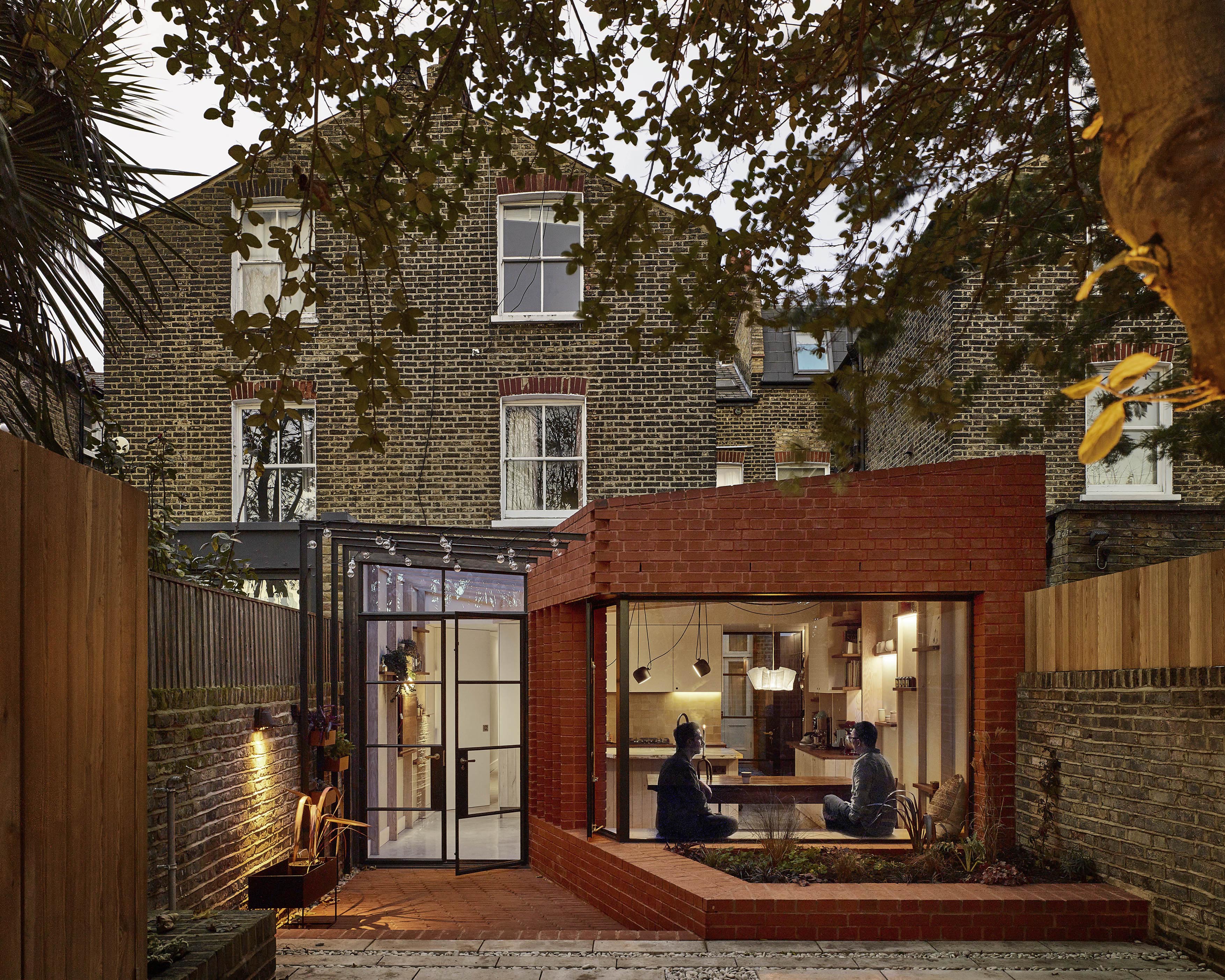 The rear extension for a new kitchen and dining area is complemented by landscaping of the west facing garden in South-West London
