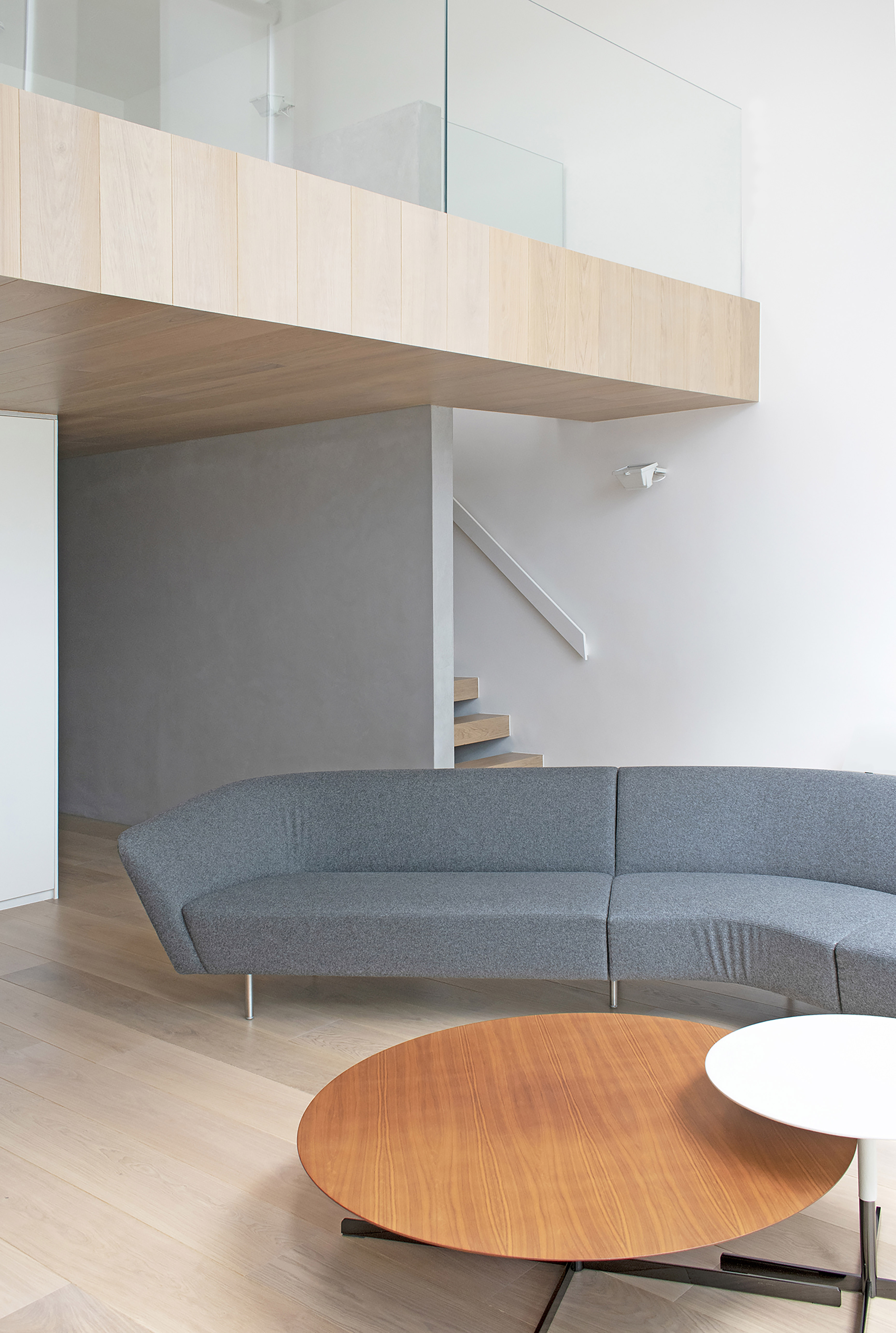 This modern terrace house in Clerkenwell was completely reconfigured and refurbished internally, incorporating a galleried top-floor office space that overlooks a double-height living area