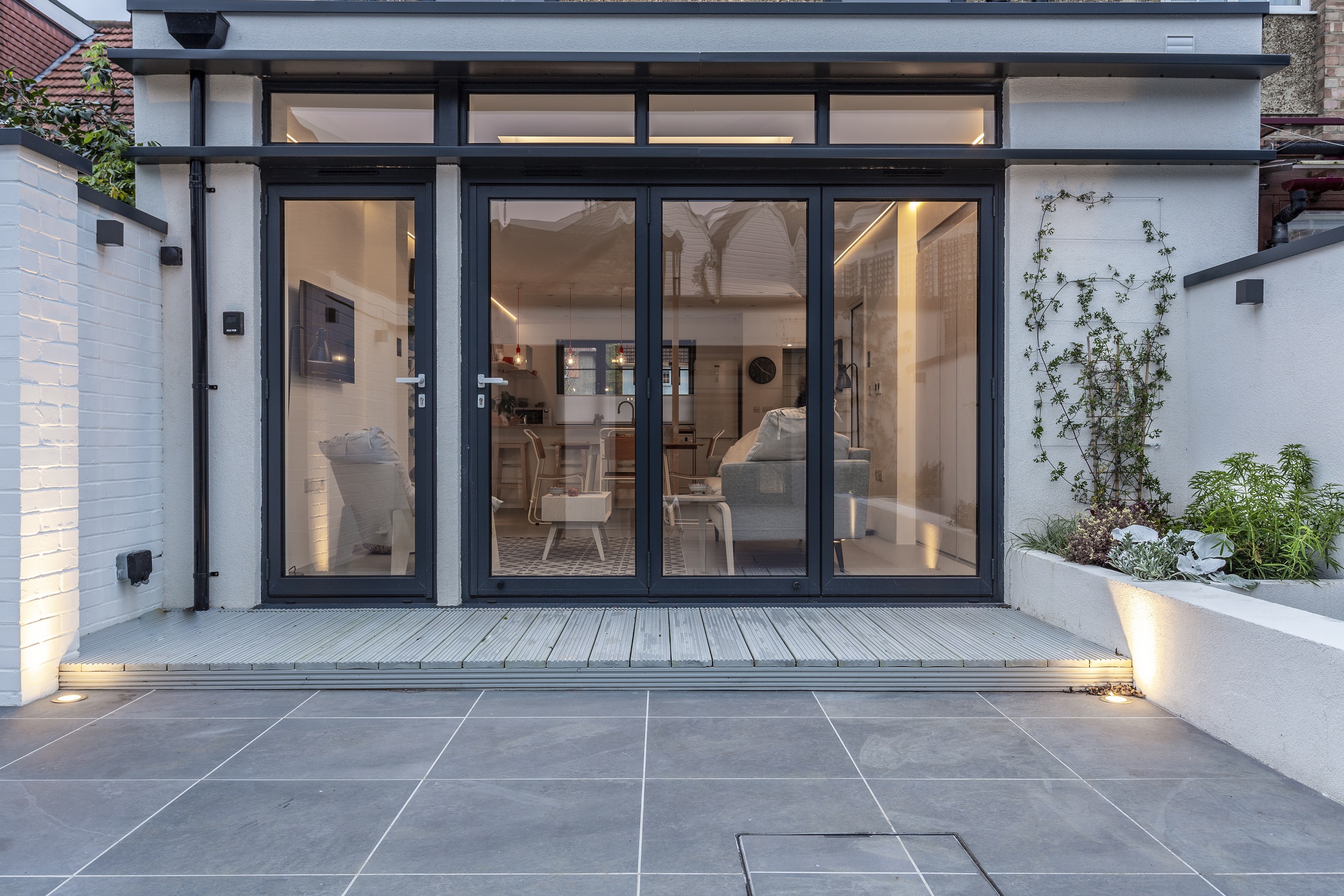 The building’s fabric has been upgraded for 21st century living. The new elements are attuned to the 1930s terrace, while acknowledging their modernity with honesty, without attempting to disguise themselves as part of the original building. The hard landscaping and new render will increasingly be softened by filled planters and climbing plants, while living roofs for the studio and garden stores and a pond are works in progress, to maximise the biodiversity of the plot.