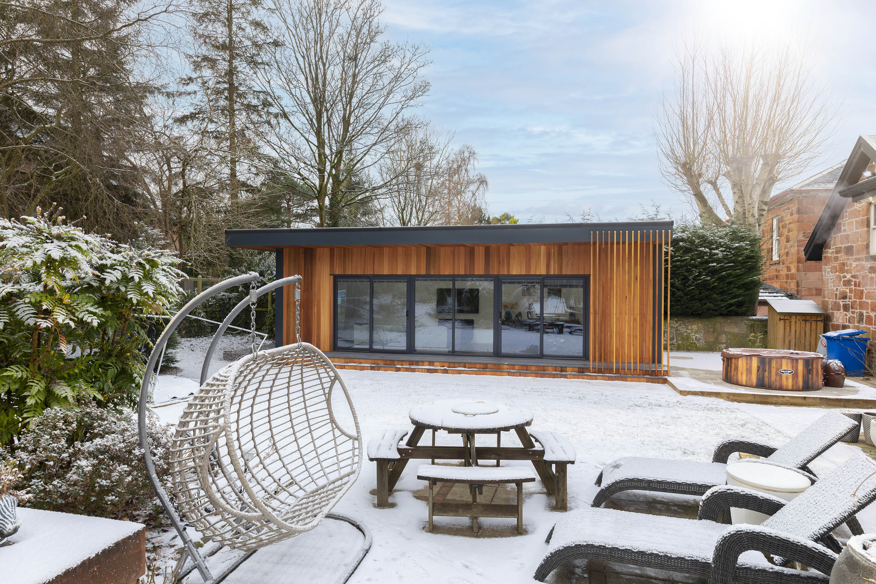 Time on site was therefore limited to only 17 days, reducing risk of Coronavirus transmission and easily allowing completion before a successive lockdown period could otherwise have restricted work on site. The project’s contemporary design combines sustainably-sourced Western Red Cedar cladding with PPC aluminium detailing, to provide a clear architectural contrast with the existing traditional adjacent stone building. Generous glazing provides natural solar gain, while overhanging eaves allow for solar shading to avoid Summer overheating.
