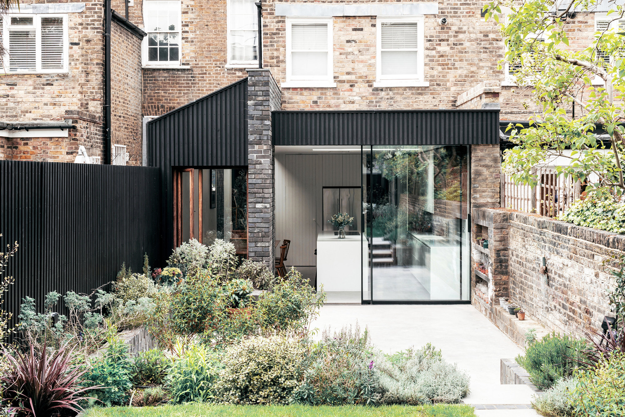 A contrasting modern extension and refurbishment to an existing family home in north London, a classic Victorian terrace on a beautiful and cherished local London Square, dramatically transformed to serve the challenges of modern family living.