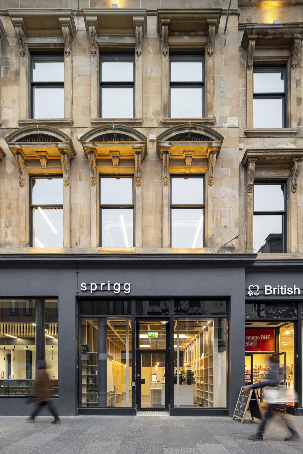 Sprigg approached O’DonnellBrown to design its new shop in the McLellan Galleries building on Sauchiehall Street located in the north-west area of Glasgow city centre.